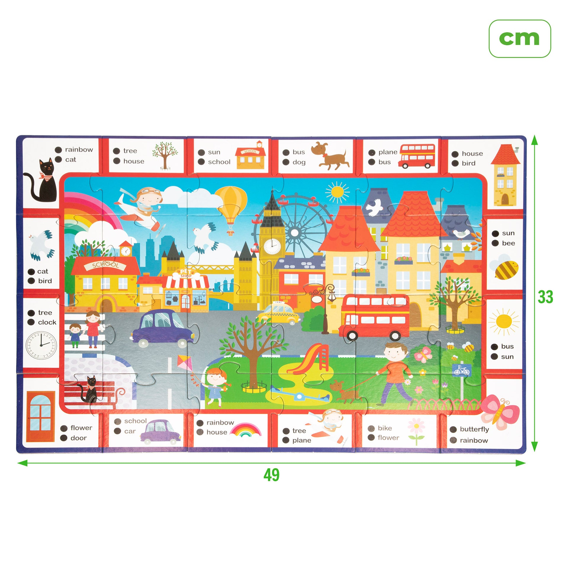 ¡A Carotina le encanta viajar y esta vez se ha ido a Londres, ha aprendido inglés y ahora quiere enseñártelo a ti también! ¡La aventura comienza con el montaje del puzle! Luego, desafía tu ingenio adivinando qué palabra se corresponde con cada imagen que se encuentra en las casillas del marco del puzle. Para ello, utiliza el bolígrafo Carotina. Simplemente presiona la punta del boli sobre la bolita correspondiente a la opción elegida. Si la respuesta es correcta, Carotina pronunciará tres diferentes frases de enhorabuena y sus hojas se iluminarán. Si la respuesta es incorrecta, Carotina te animará a intentarlo de nuevo. Además, también podrás jugar a buscar las palabras del marco en la imagen central. Y en el reverso del puzle, todavía más palabras que aprender...¡Una forma fácil y divertida de aprender inglés con el juego de mesa 2 en 1 Carotina Liscinani!