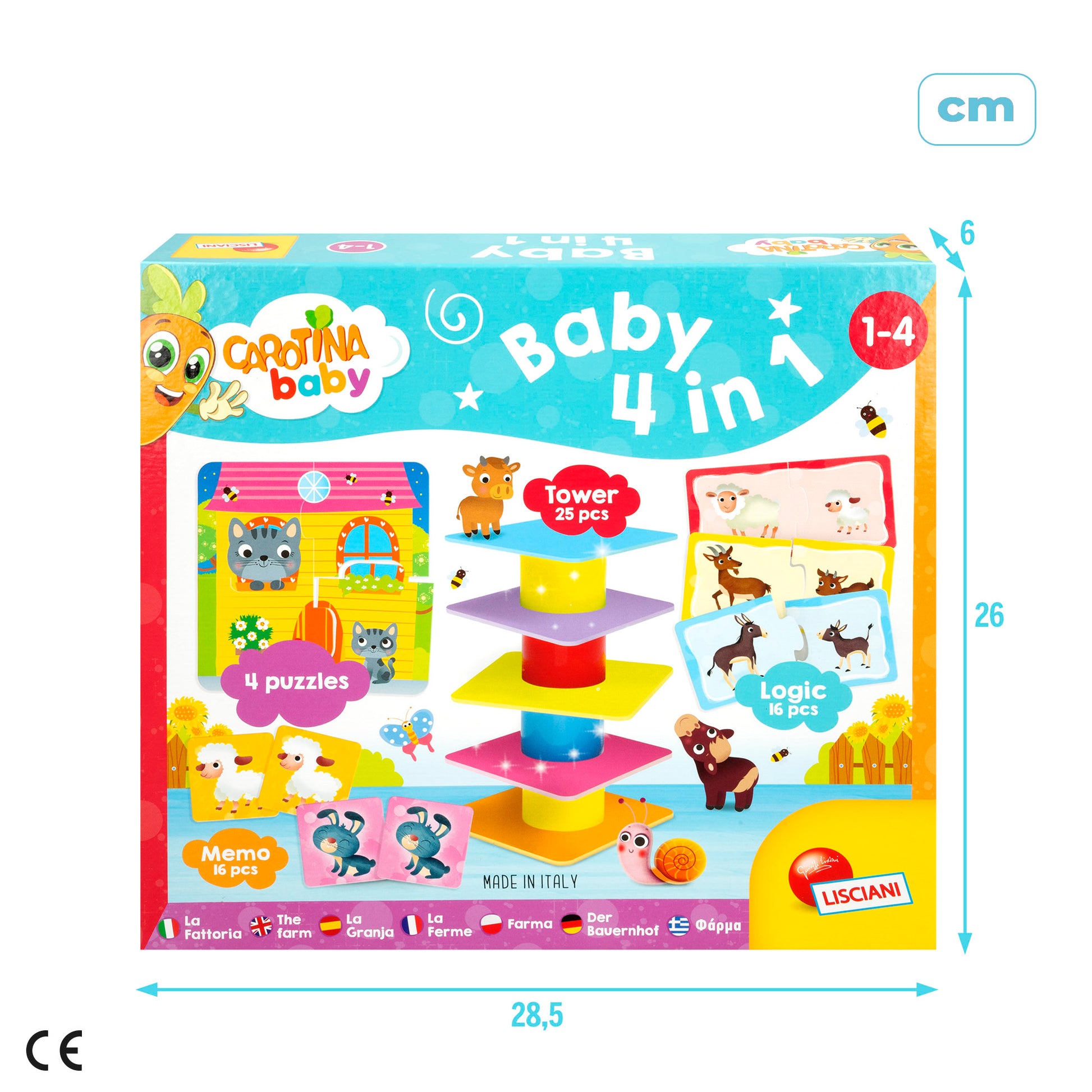 ¡El aburrimiento quedará a un lado con este conjunto de alegres y divertidos juegos educativos de mesa de la famosa Carotina Baby de Lisciani!