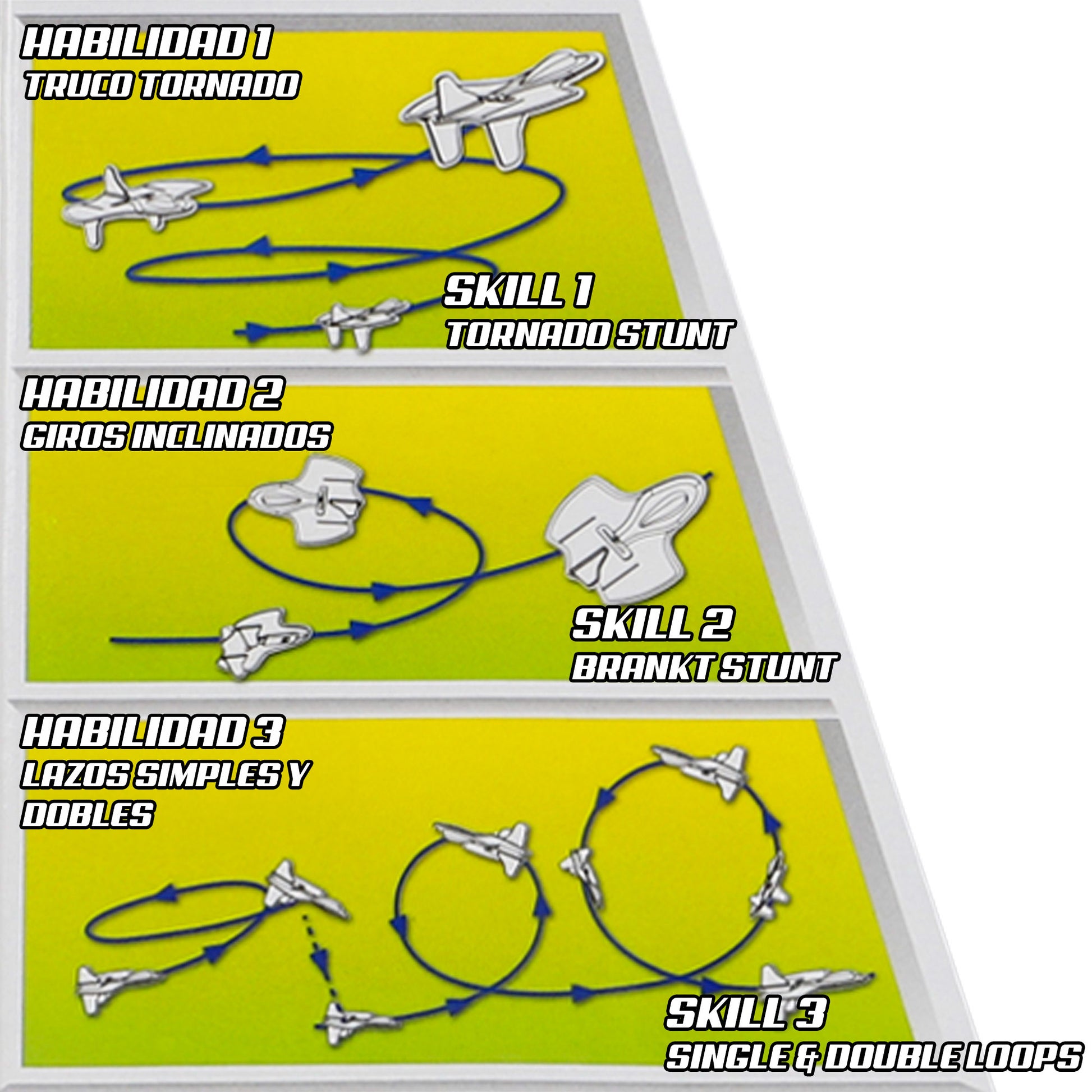 ¡Prepárate para volar alto con la Stunt Flyers! Esta increíble avioneta radiocontrol está diseñada para hacer acrobacias que te dejarán sin aliento. ¿Te atreves a realizar un increíble tornado acrobático? ¿Eres más de dar giros de vértigo? ¿O quizá prefieras los bucles simples o dobles? ¡Tú decides! Con la avioneta Stunt Flyers, cada vuelo será una aventura llena de acción y pura diversión en el aire.