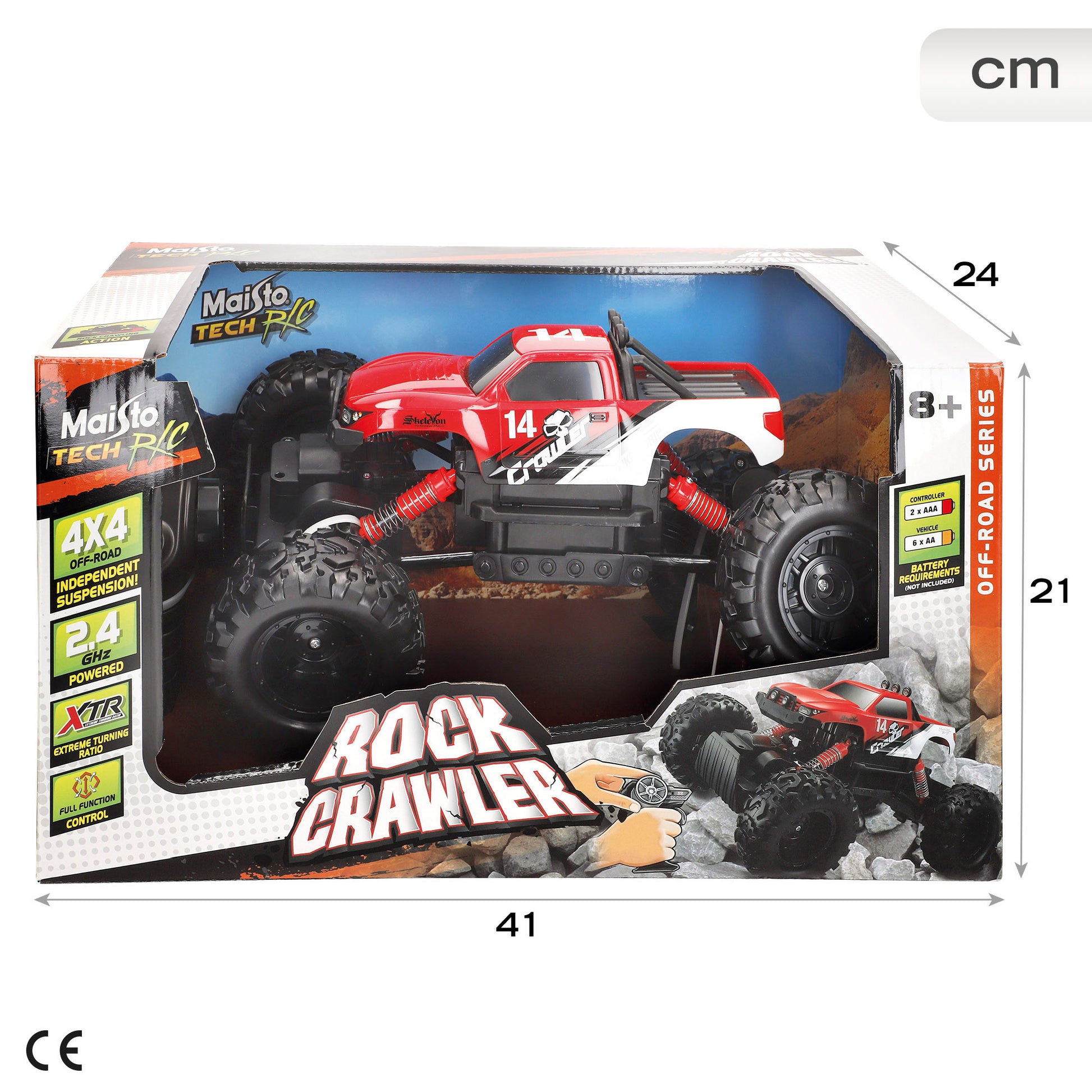 El Rock Crawler incluye un mando teledirigido ergonómico de estilo pistola que funciona a 2.4 GHz, ofreciendo un manejo intuitivo y cómodo con una sola mano. El mando permite mover el coche en seis direcciones: hacia adelante, atrás, izquierda, derecha y giros en ambas direcciones. Además, tiene un alcance de 35 metros, lo que te permite disfrutar de una experiencia de juego más libre y emocionante. ¡Prepárate para la aventura más divertida con el Rock Crawler de Maisto Tech RC!