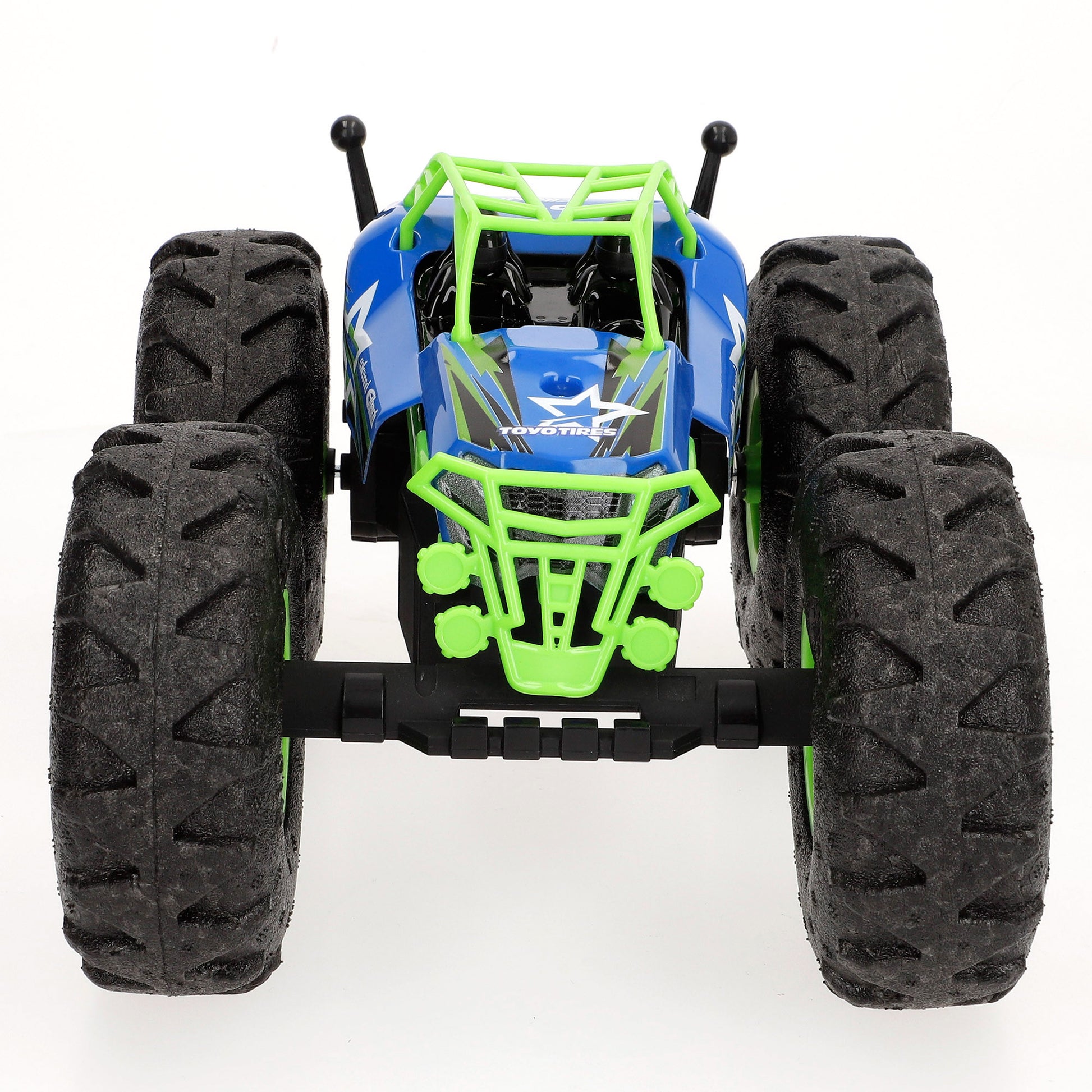 Este increíble coche radiocontrol viene con un mando teledirigido que opera a 2.4 GHz y que permite dirigirlo en seis direcciones diferentes: adelante, atrás, izquierda, derecha, giros en ambas direcciones y, por supuesto, activar los sorprendentes giros de 360º en estático.
