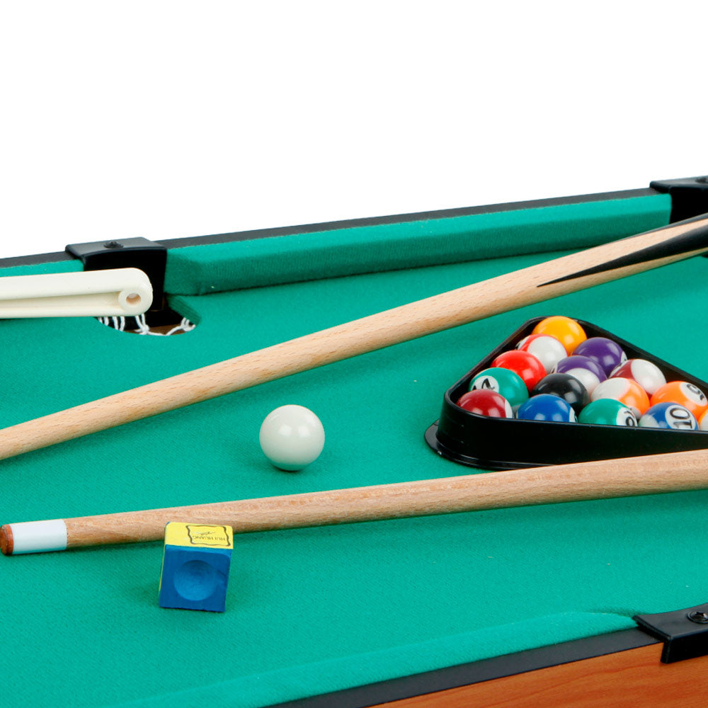 Mesa multijuegos CBGames con armazón de madera y 4 juegos con sus accesorios. Juega en una misma mesa al futbolín, al billar, al pin pon o al hockey. La base de la mesa es el billar y encima de ella se encajan el resto de juegos. Su tamaño es de 87x43x73 cm y está recomendado para su uso por mayores de 6 años. Con estamesa de juegos 4 en 1 el juego en familia está asegurado.