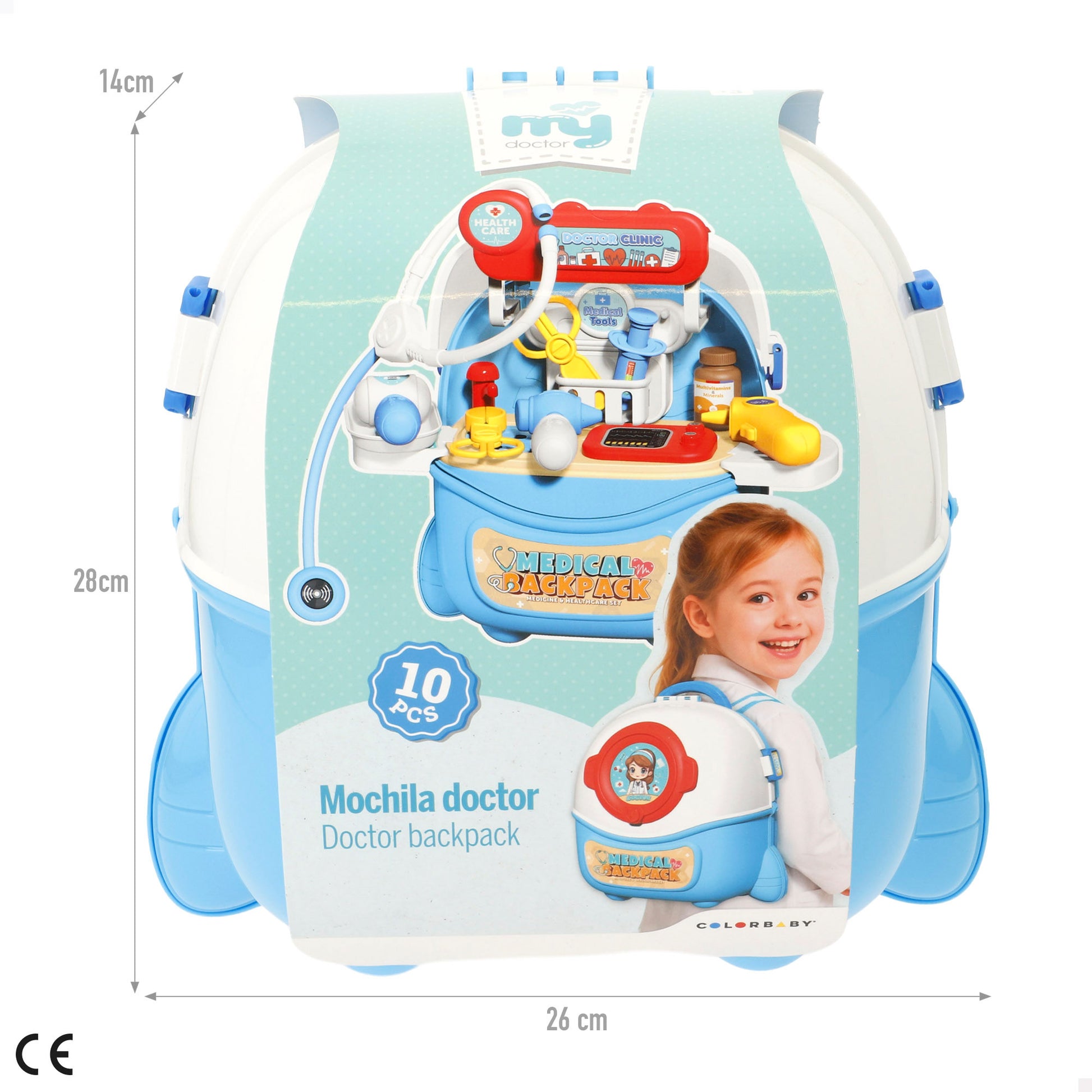 Juguete recomendado para niños y niñas a partir de 3 años. La mochila es ligera, fácil de transportar y muy sencilla de montar en su versión de consulta médica. Todos los instrumentos son de imitación y están diseñados para jugar con total seguridad.