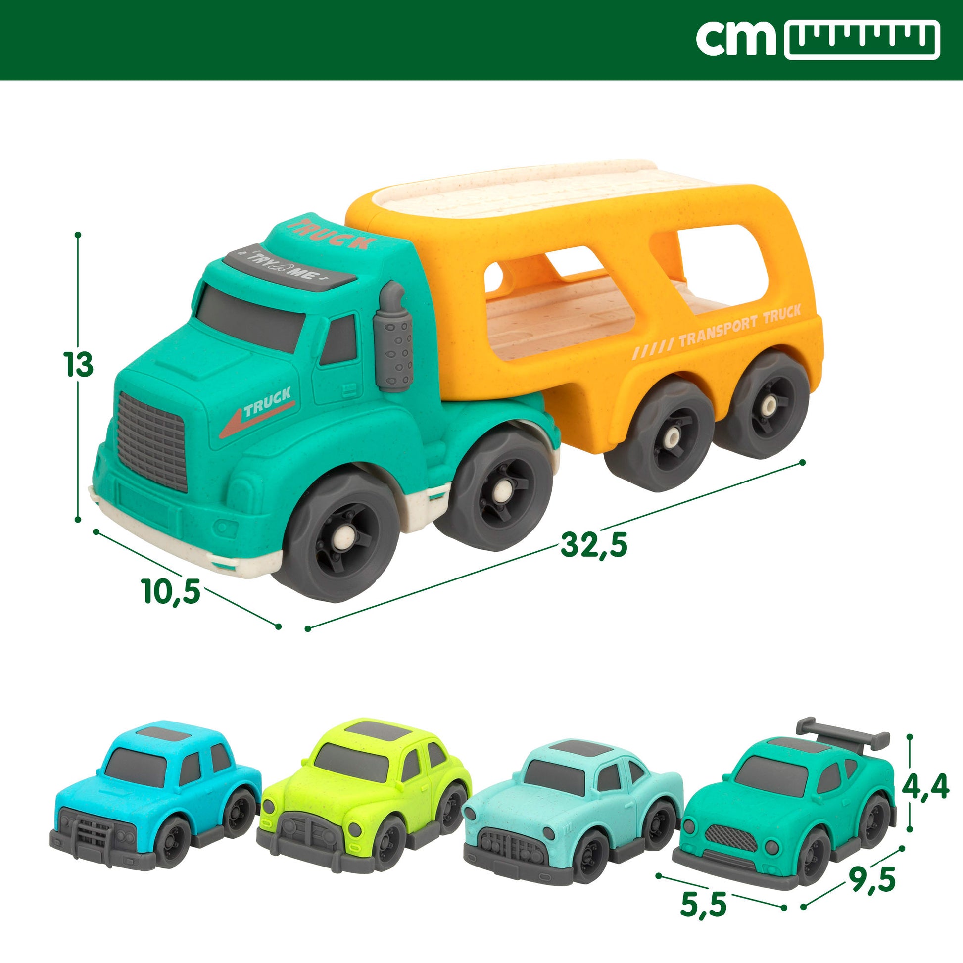 Estos camiones de juguete portacoches forman parte de los juguetes simbólicos con los que los más pequeños dan rienda suelta a su imaginación mientras juegan a interpretar el papel de ser conductores o camioneros. Además, al incluir 4 cochecitos de textura muy suave, podrán compartir el juego con amigos o familiares desarrollando, de esta manera, la socialización y consiguiendo estimular su sentido del tacto. Pero eso no es todo, ya que, además, es un juguete que promueve valores sostenibles debido a los materiales con los que está fabricado, fomentando así, un juego más respetuoso con el medio ambiente.