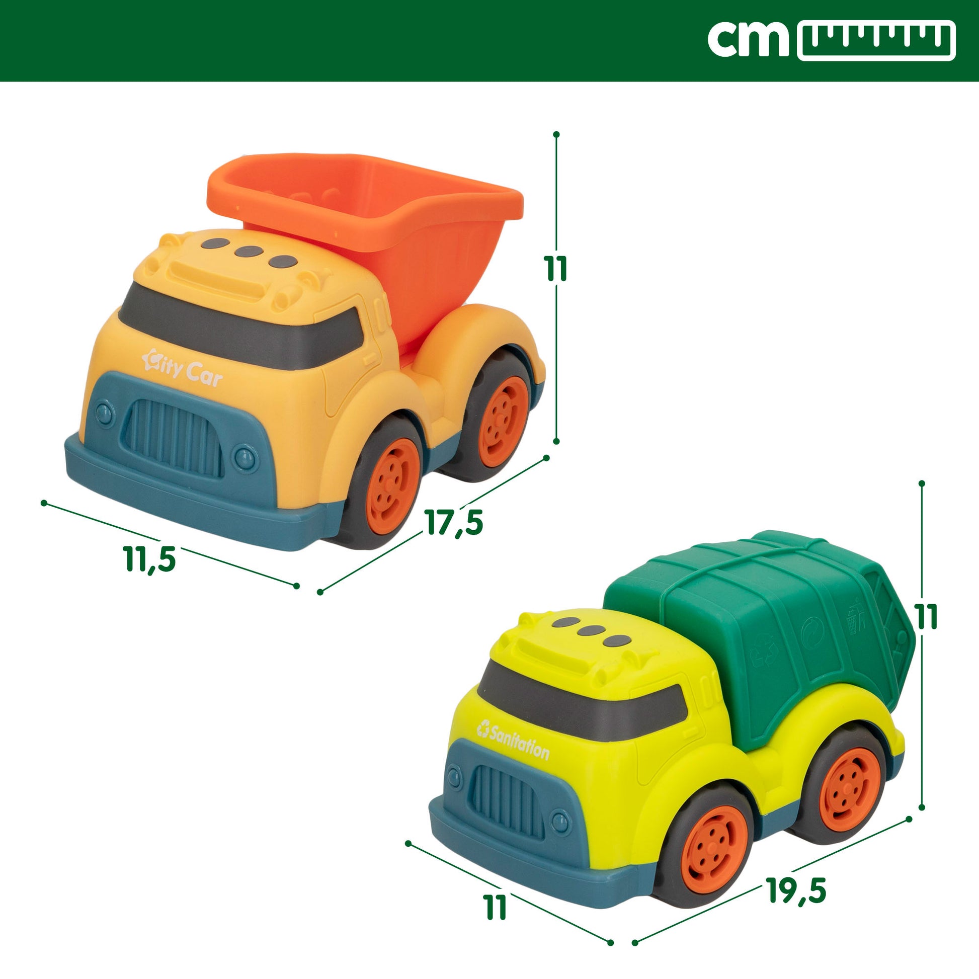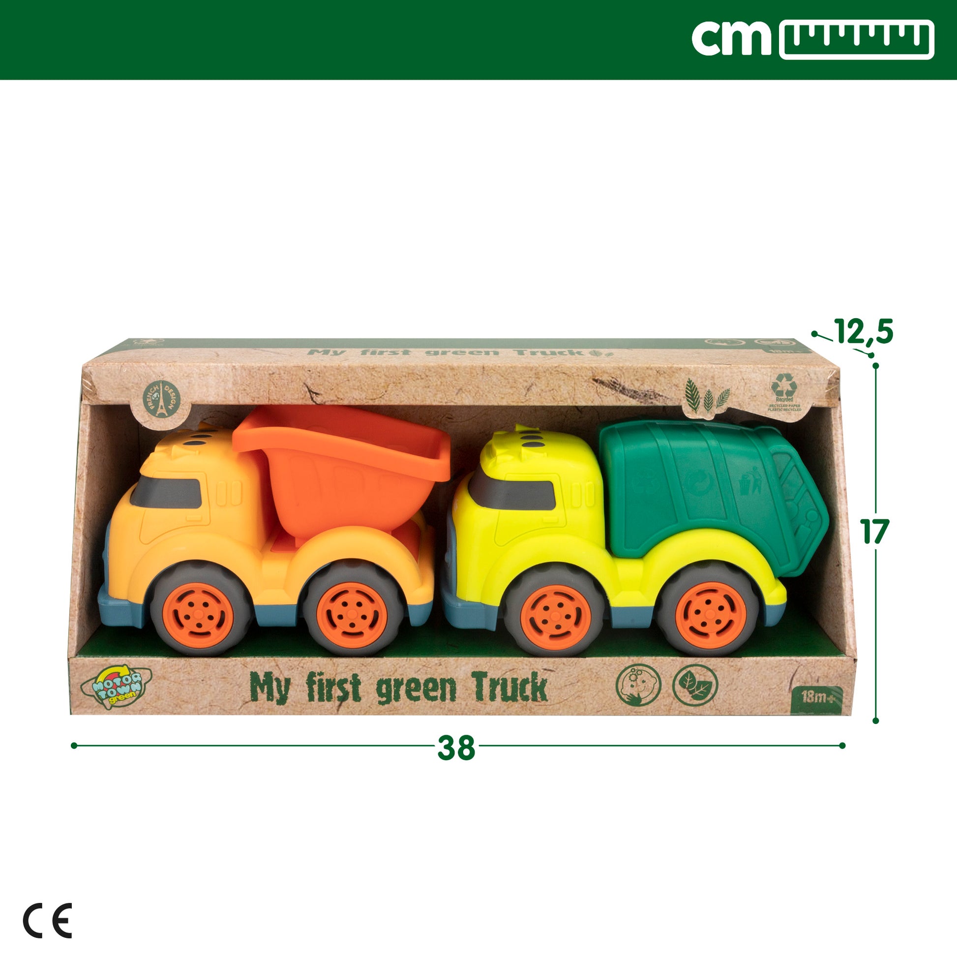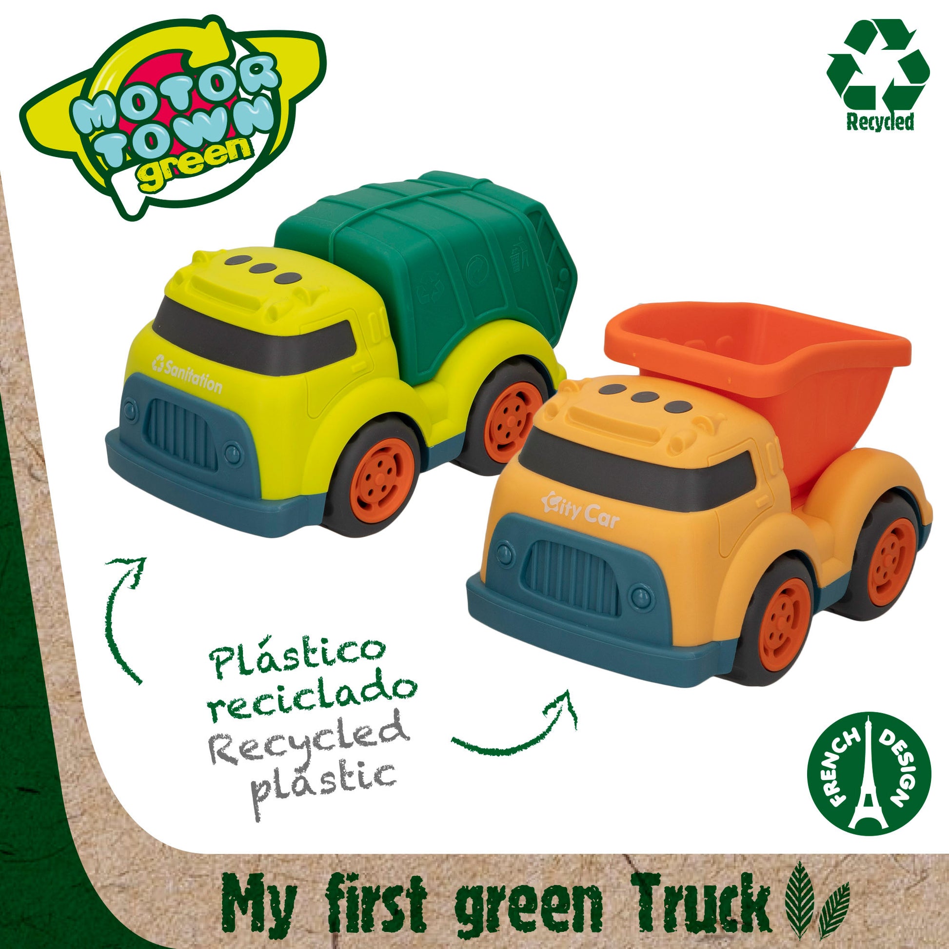 ¡La ciudad necesita tu ayuda para vaciar los contenedores y terminar las obras pendientes! Prepara tus camiones Motor Town Green y ponte manos a la obra, los contenedores están llenos y los obreros necesitan material para terminar la construcción. El set incluye un camión de reciclaje y un camión volquete de construcción interactivos: uno de los camiones puede inclinar su volquete para descargar material y el otro puede abrir y cerrar manualmente su puerta para depositar los residuos en la planta de reciclaje. Al estar fabricado con materiales reciclados, con este set aprenderán sobre valores sostenibles y jugarán a imaginar que trabajan en una empresa de reciclaje y construcción.