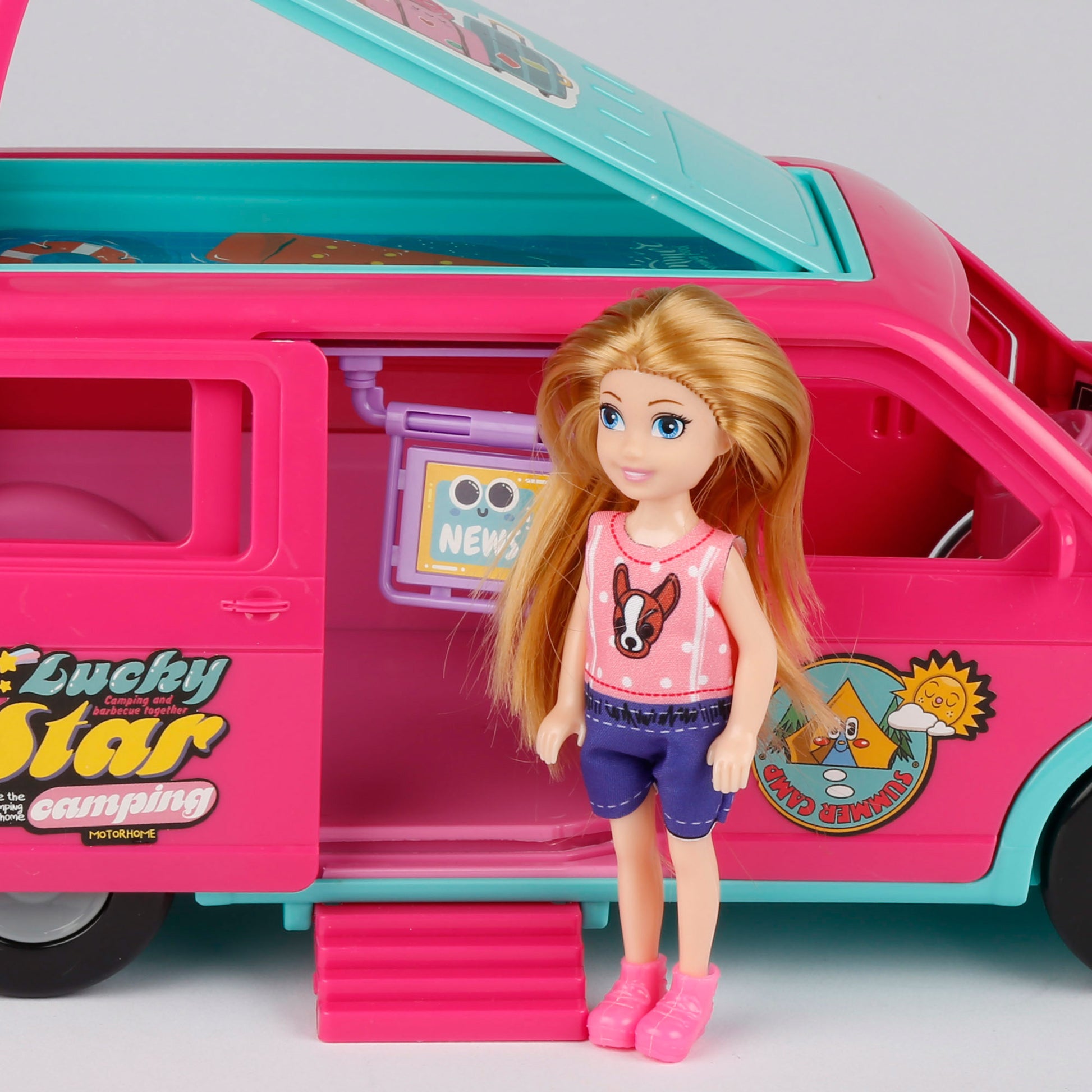 ¡Prepárate para un sinfín de aventuras con la muñeca Bella y su completa furgoneta de camping! Con esta furgoneta, cada salida se convierte en una experiencia única. Imagina que estás en un campamento donde puedes deslizarte por un divertido tobogán que cae en una piscina, descansar bajo el sol en cómodas tumbonas, disfrutar de una rica comida de barbacoa y, al caer la noche, dormir en una tienda de campaña justo al lado de una fogata. ¡Bella está lista para acompañarte en las aventuras más increíbles! Solo tienes que abrir la furgoneta y dejarte llevar. ¡Cada campamento será una nueva aventura!