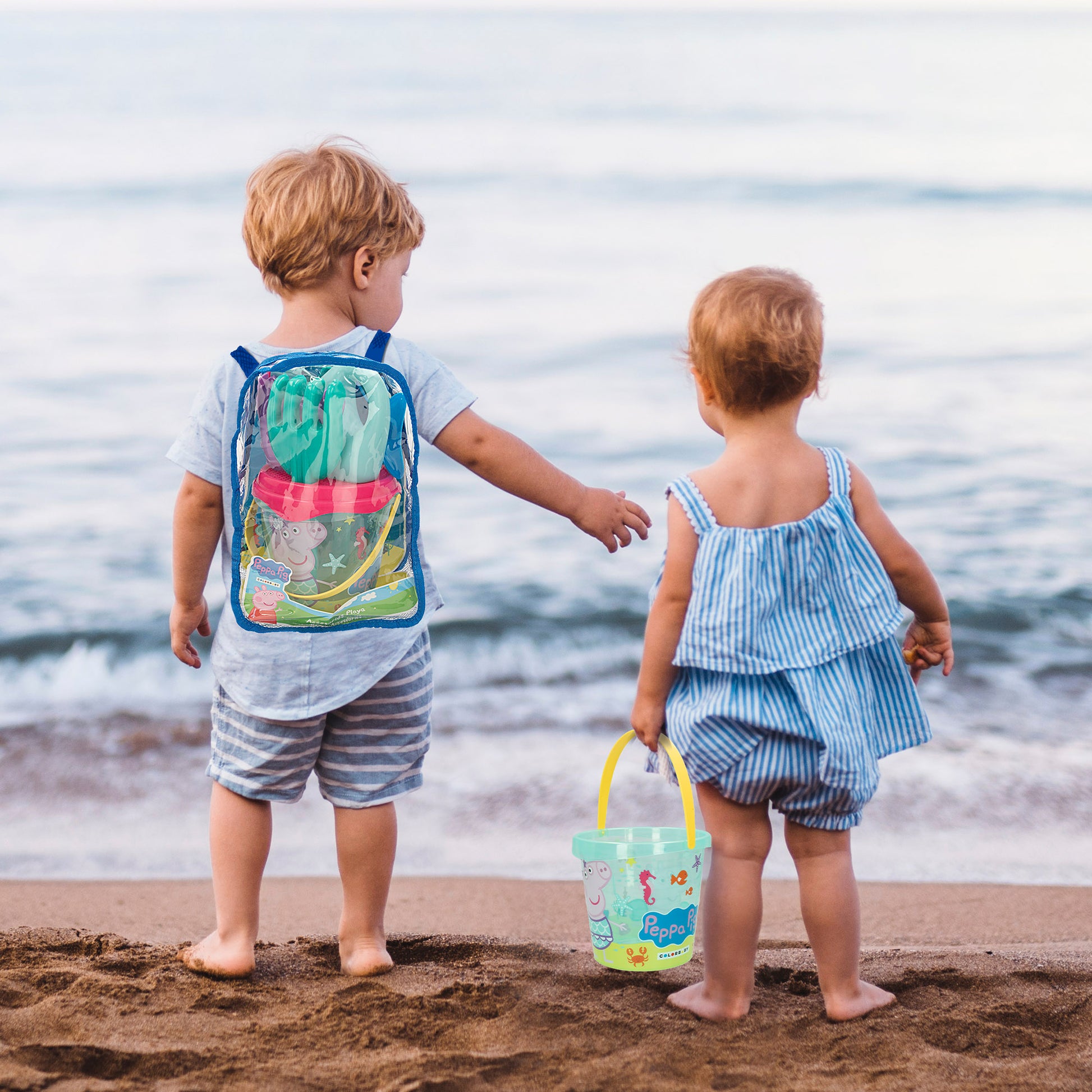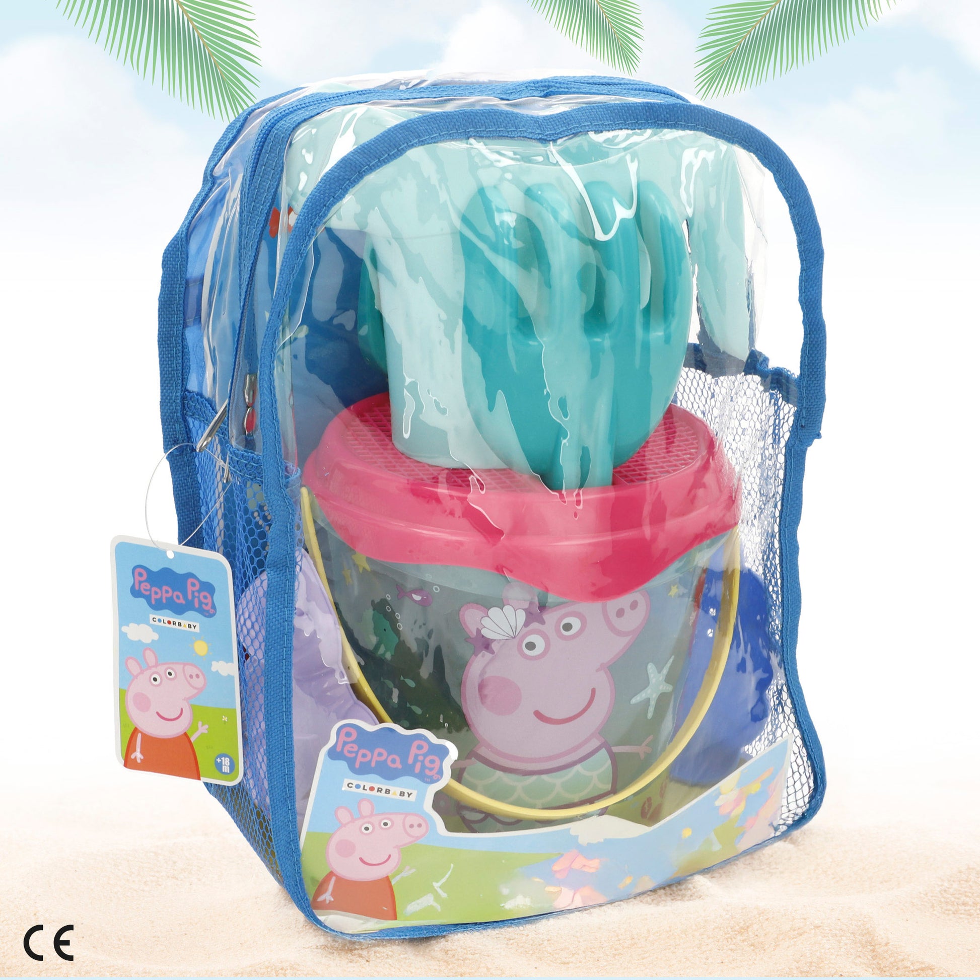 Peppa Pig Set cubo playa con accesorios y mochila transporte