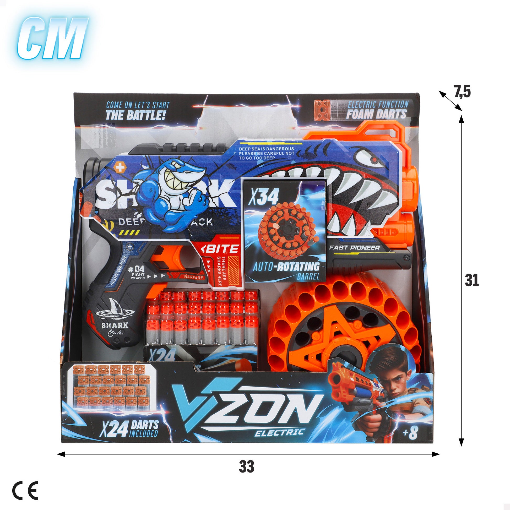 ¡Prepárate para un combate épico en las con la V-Zon! Esta pistola de dardos eléctrica tiene un diseño feroz de tiburón que le da un toque único y atrevido. Su tambor automático rotativo te permite disparar sin parar, ¡perfecto para no perder el ritmo en ninguna batalla! Además, cuenta con una mirilla en la parte superior para mejorar la puntería y un botón de seguridad que garantiza un uso seguro en todo momento.