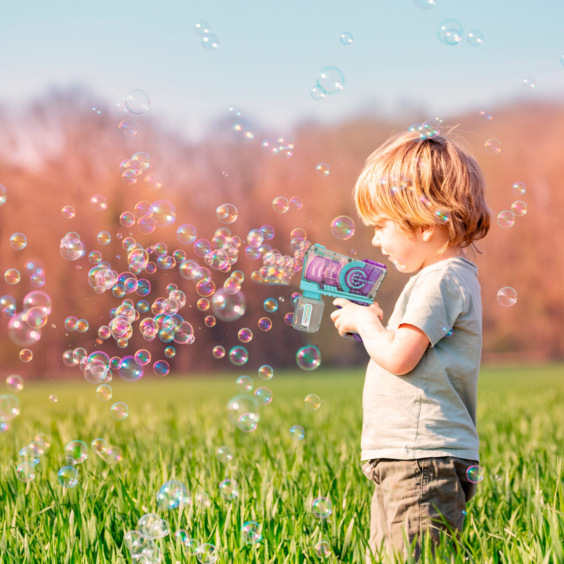 Incluye un bote de solución jabonosa de 100 ml para crear miles de pompas de jabón. ¡Prepárate para invadir el cielo de burbujas!