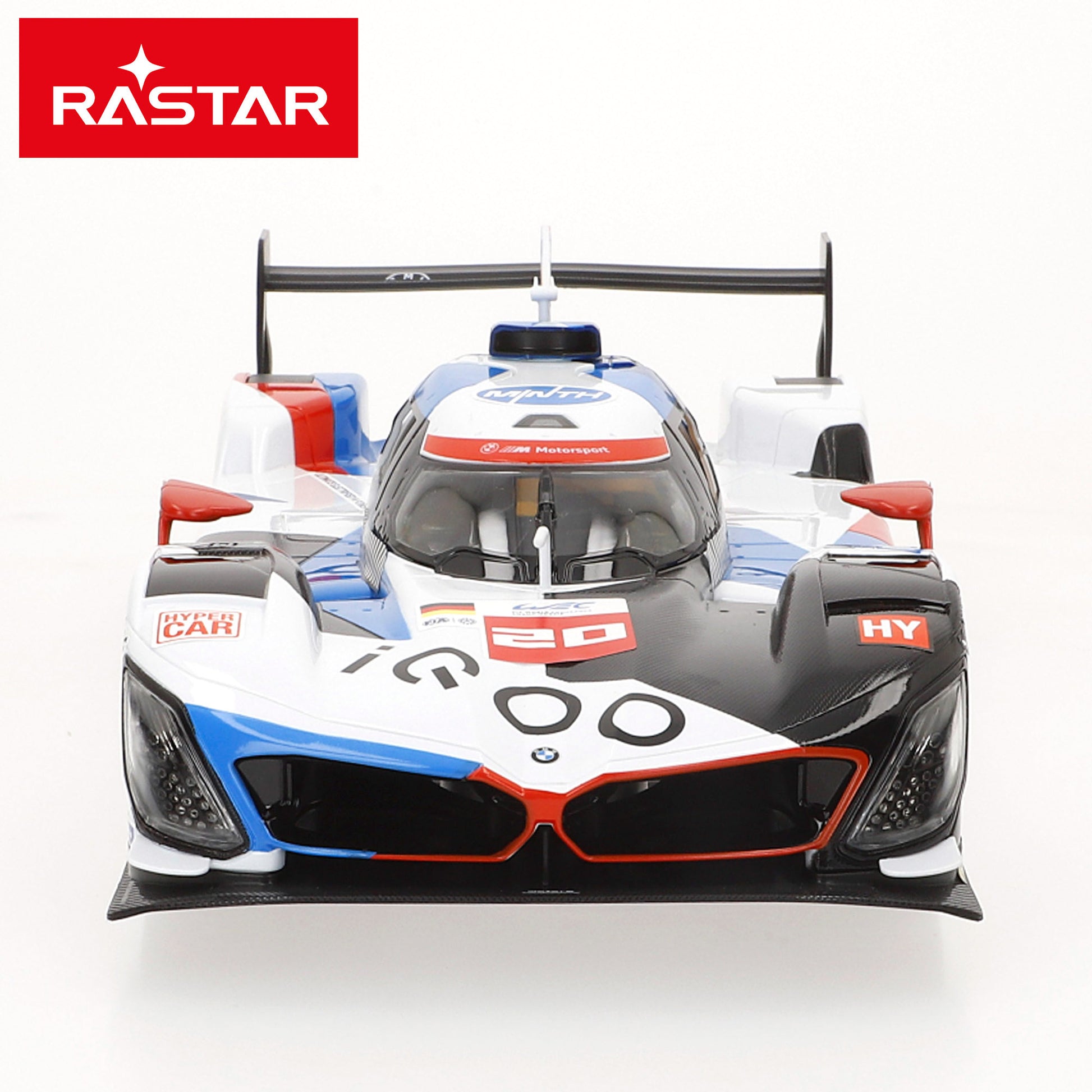 Es un coche de radiocontrol a escala 1:14 inspirado en el BMW M Hybrid V8, un modelo de competición de altas prestaciones. Las luces delanteras y puertas de apertura manual dan como resultado un diseño realista y exclusivo. Gracias a su sistema de 6 funciones, permite girar, acelerar, retroceder y frenar con facilidad. Su diseño aerodinámico, los detalles de la carrocería y la decoración oficial lo convierten en un modelo perfecto para fans de la velocidad y coleccionistas.