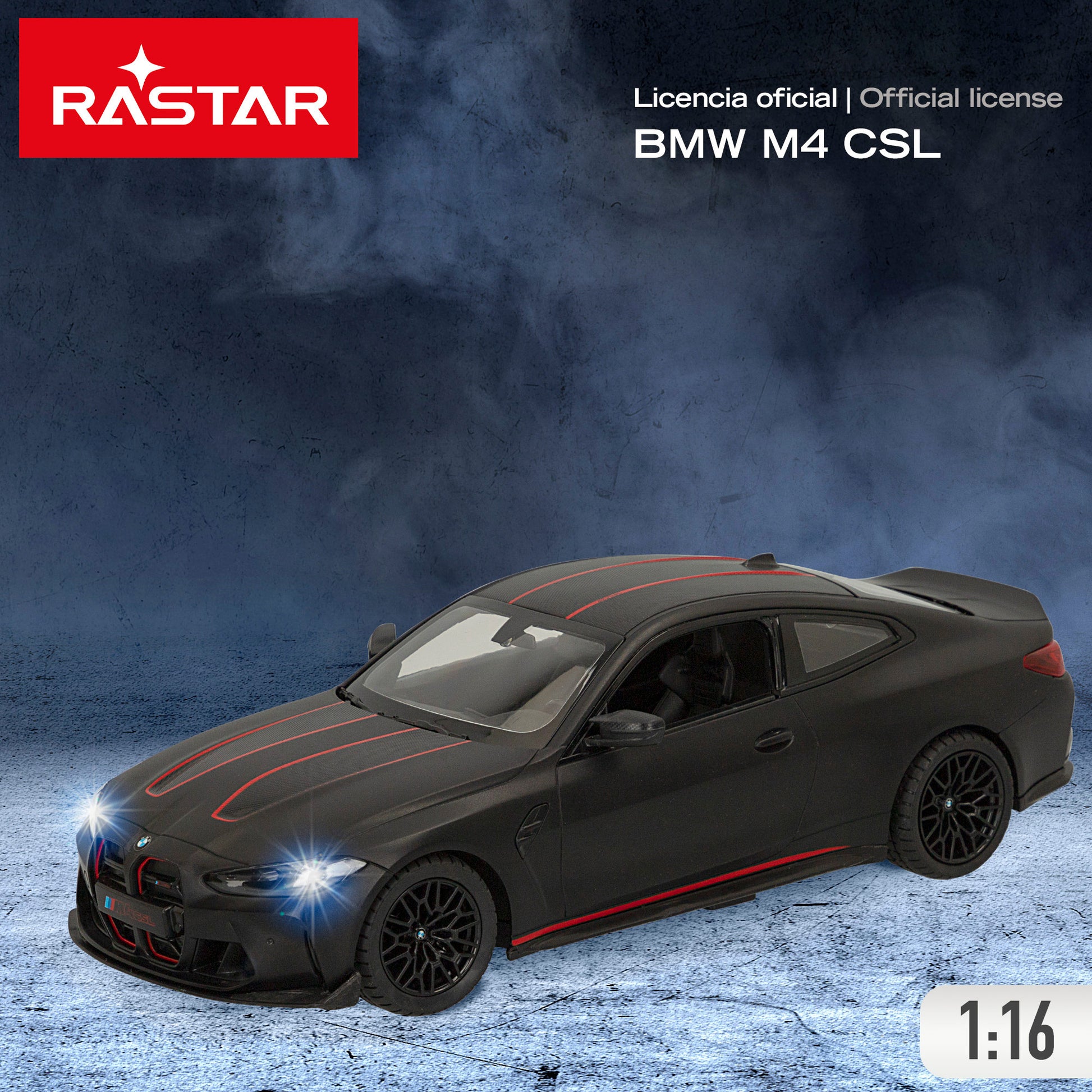 ¡Llega la versión más salvaje de BMW con el modelo M4 CSL RASTAR! Esta réplica de juguete, a escala 1:16, está diseñada con todo detalle en un elegante color negro metalizado con detalles en rojo para el capó, el techo y las taloneras. Un coche de licencia que destaca por contar con un alerón trasero integrado en la tapa del maletero en forma de cola de pato y por no tener ventanas laterales delanteras, ¡ideal para contemplar su interior con todo detalle! ¡Una joya de la ingeniería en miniatura!