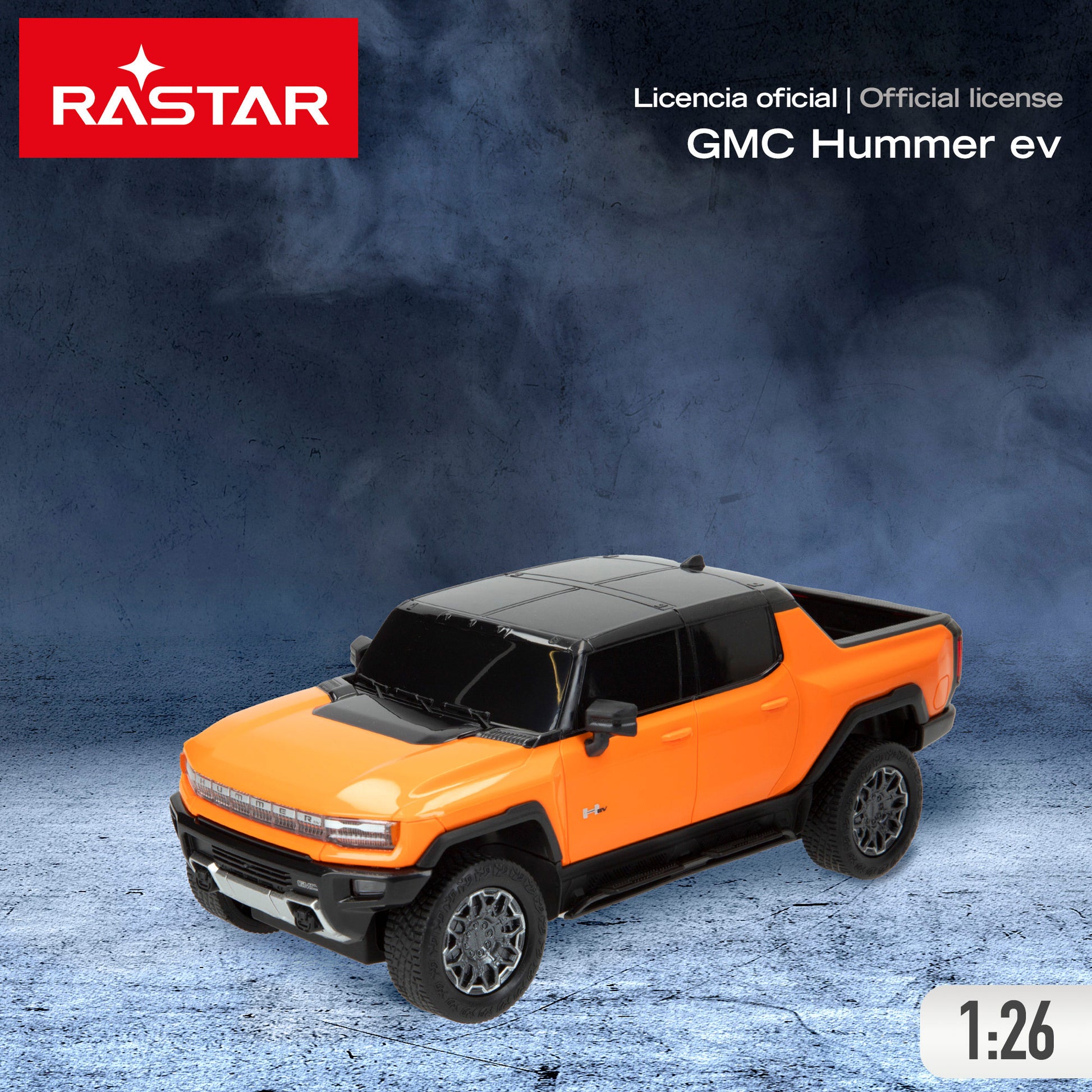 ¡Domina todos los caminos, incluso en miniatura, con el HUMMER EV teledirigido! Un un coche completamente eléctrico que representa el retorno de los icónicos 4x4 americanos. Diseñado en naranja a escala 1:26, este coche radiocontrol destaca por su voluminoso capó que da lugar a una luneta delantera casi vertical, a grandes espejos retrovisores y una alargada cama de carga trasera. ¡La emoción de la conducción en tus manos!