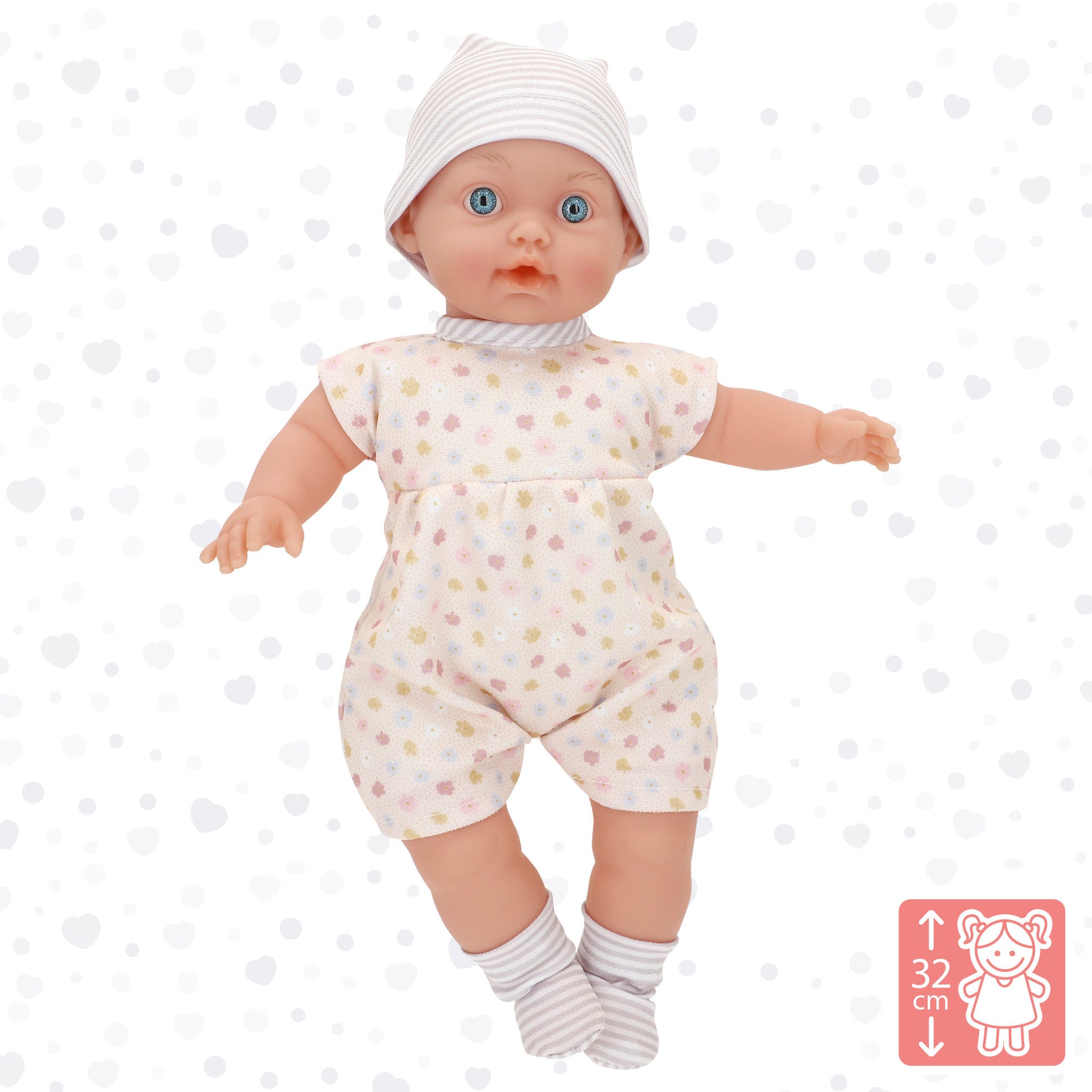 El set incluye dos muñecas bebé de 33 cm con cuerpo blandito, vestidas con conjuntos de colores suaves, gorritos y chaquetitas. Gracias a su tamaño manejable y su diseño realista, son perfectas para que los niños las lleven en brazos, las acunen o las incluyan en cualquier momento del día, incluso a la hora de dormir.