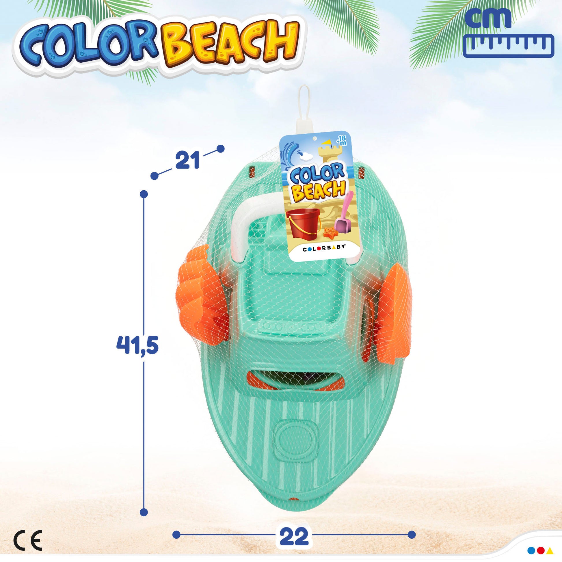 ¡Lleva tu yate a la playa! Con este set de juguetes podrás jugar con la arena de la playa durante todo el día. Incluye cubo de 14 cm de diámetro, un yate desmontable de 36 cm, una pala y un rastrillo de 20 cm de largo, y 3 moldes en forma de barco, estrella de mar y cocodrilo. Recomendable a partir de los 18 meses.