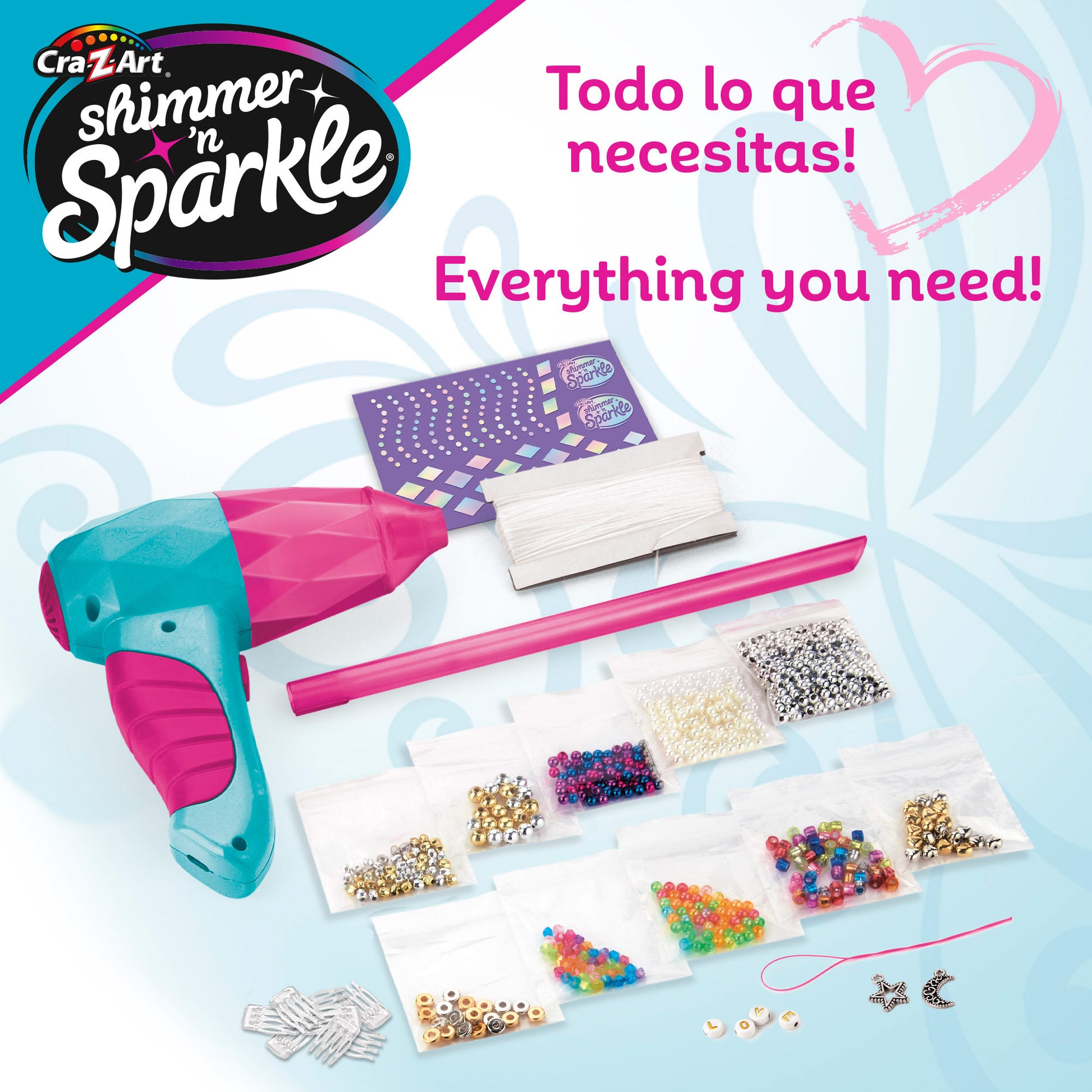 El Air Styler de Shimmer 'n Sparkle es una herramienta que desarrolla la creatividad de los niños al permitirles expresar su estilo combinando diferentes patrones de gemas. Además, es un juguete que también mejora su motricidad fina y habilidad manual, ya que los niños tendrán que manipular las pequeñas gemas para crear los diseños con la ayuda del enhebrador para después colocarlas en el tubo del Air Styler y, seguidamente, en el pelo.