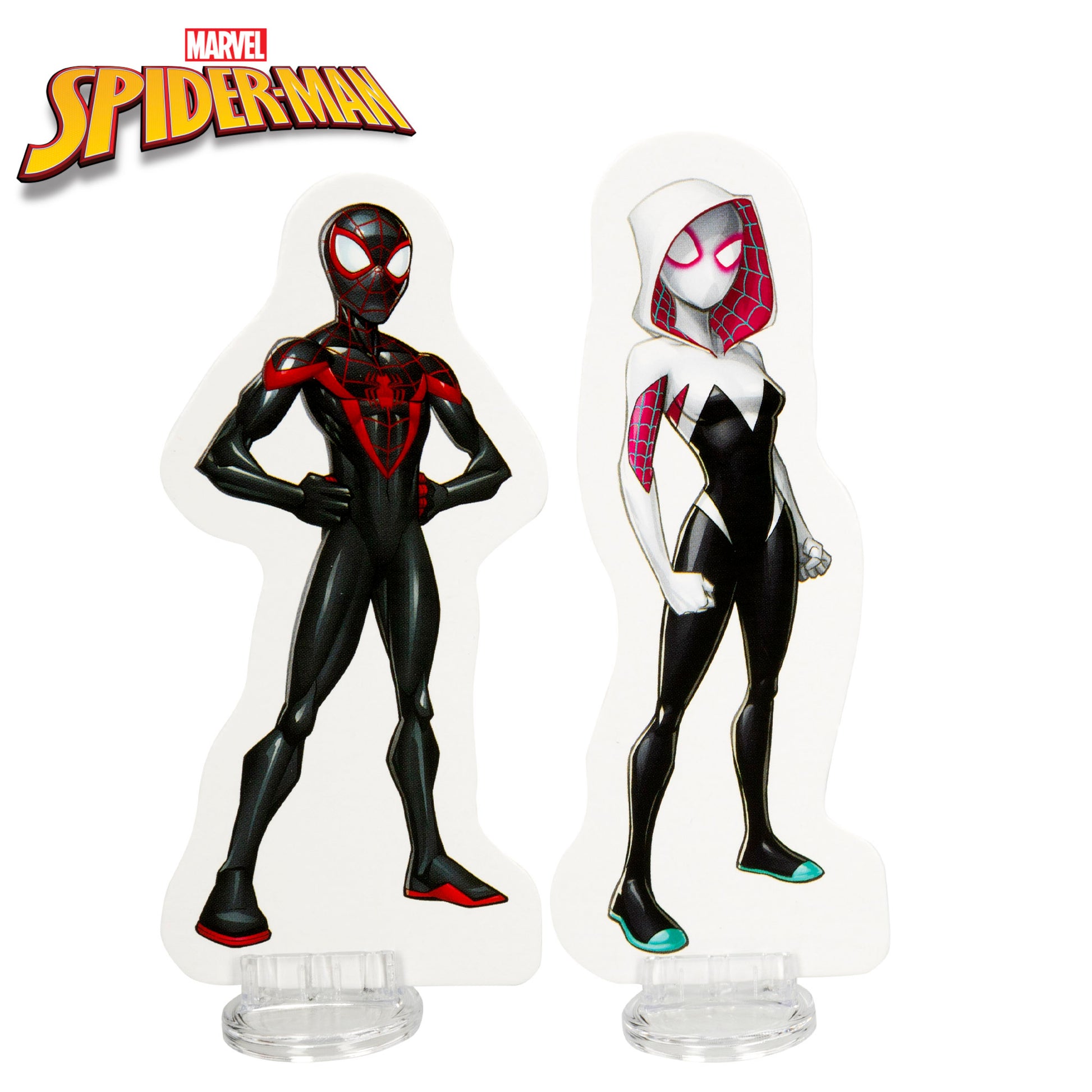 El juego de mesa incluye spinner, flecha para el spinner, 4 personajes superhéroes (Spider-Man, Spider Fantasma, Spider-Girl y Miles Morales) con soporte para mantenerse en pie, 7 cartas de villanos, 4 cartas marcapuntos, 22 fichas Thwip e instrucciones sobre cómo jugar.