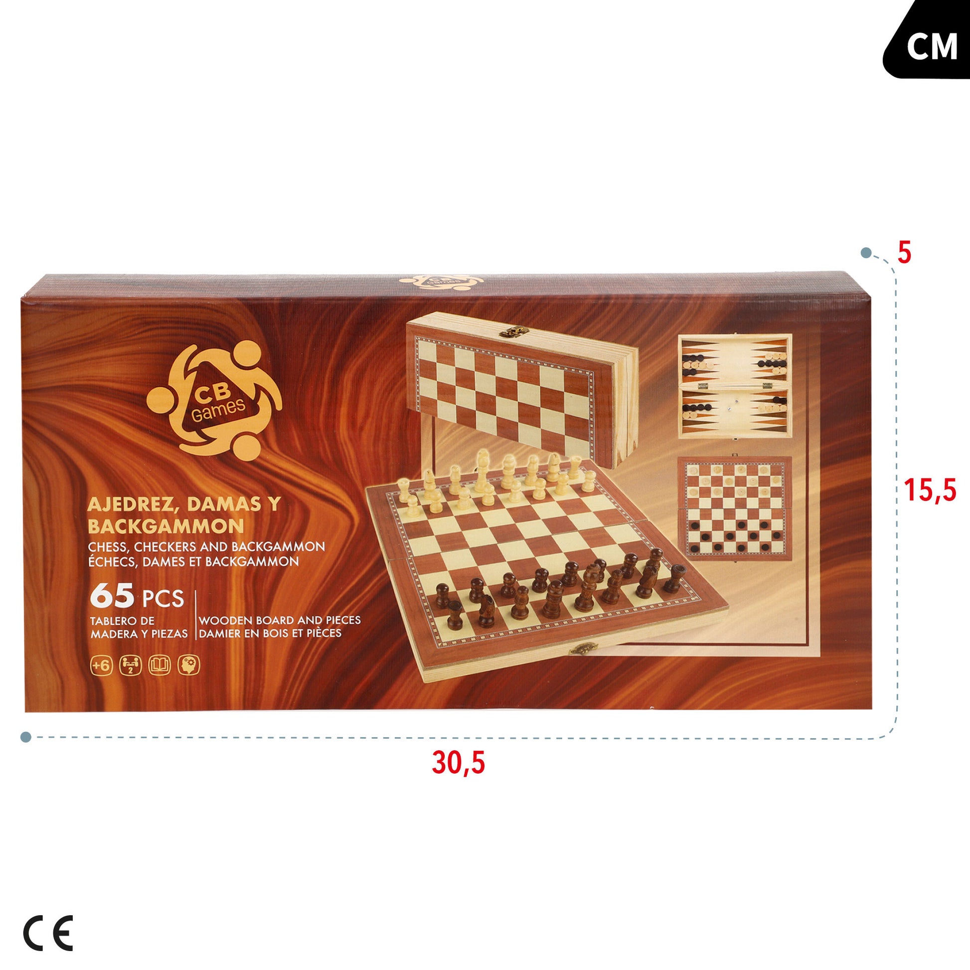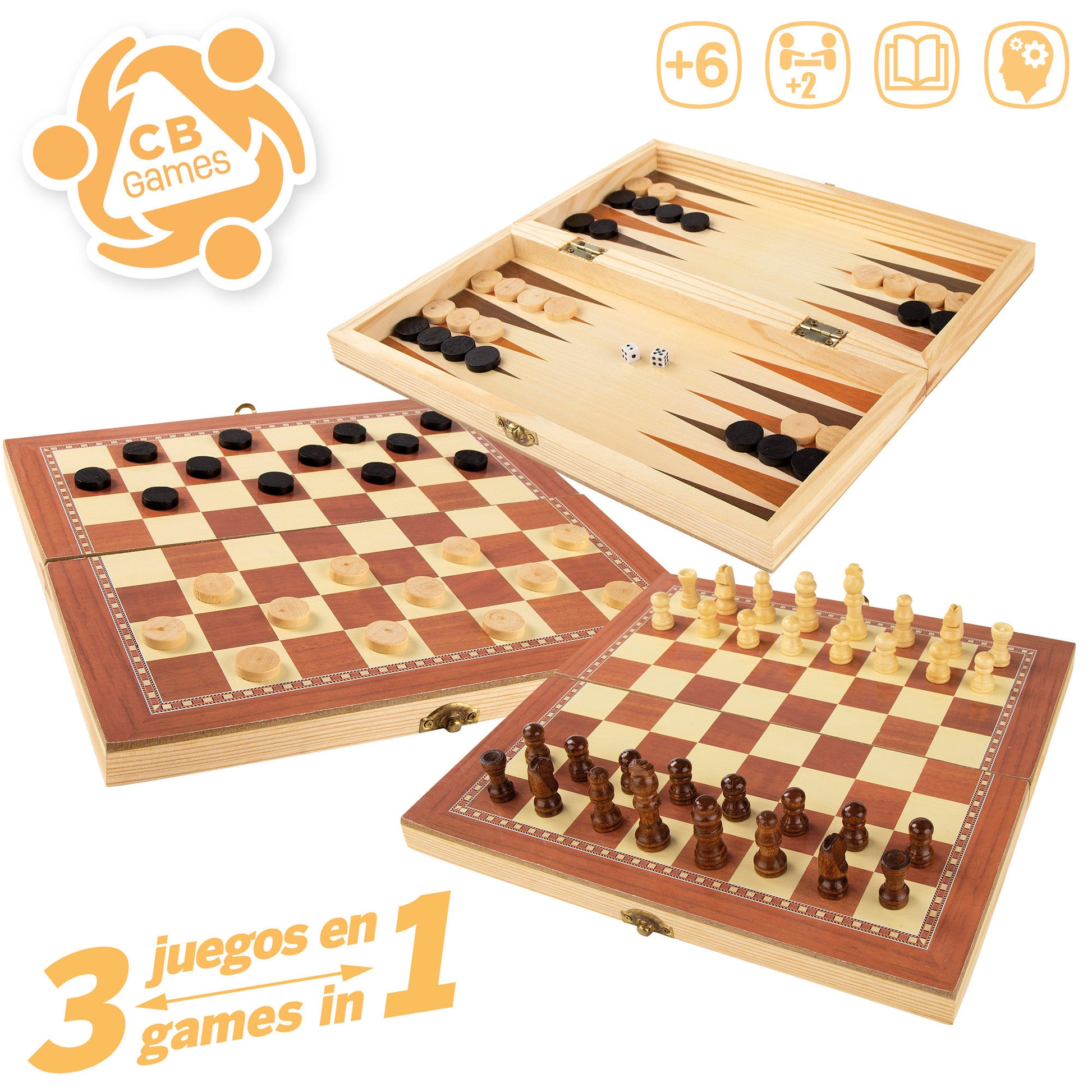 Tablero ajedrez 3 en 1 de madera CB Games