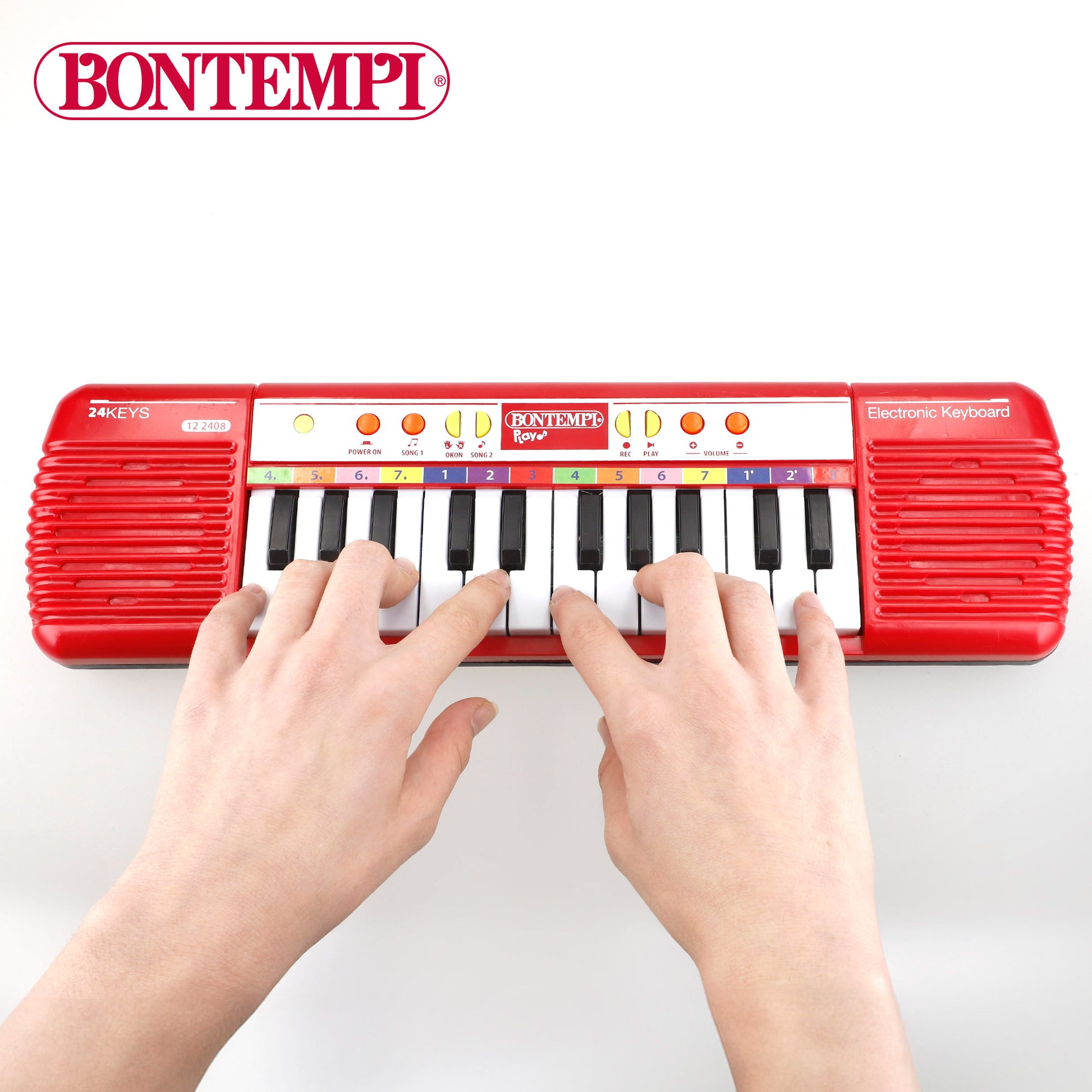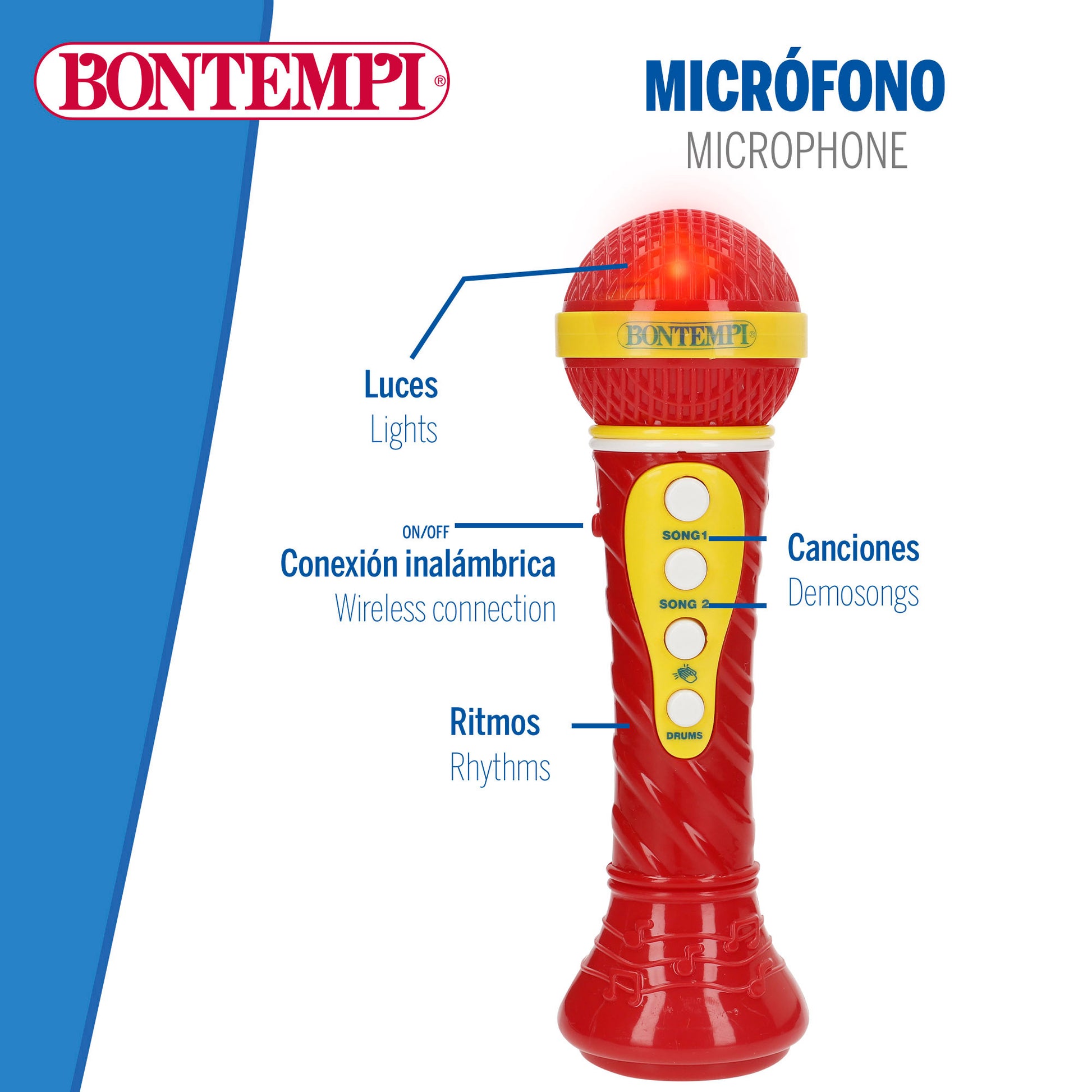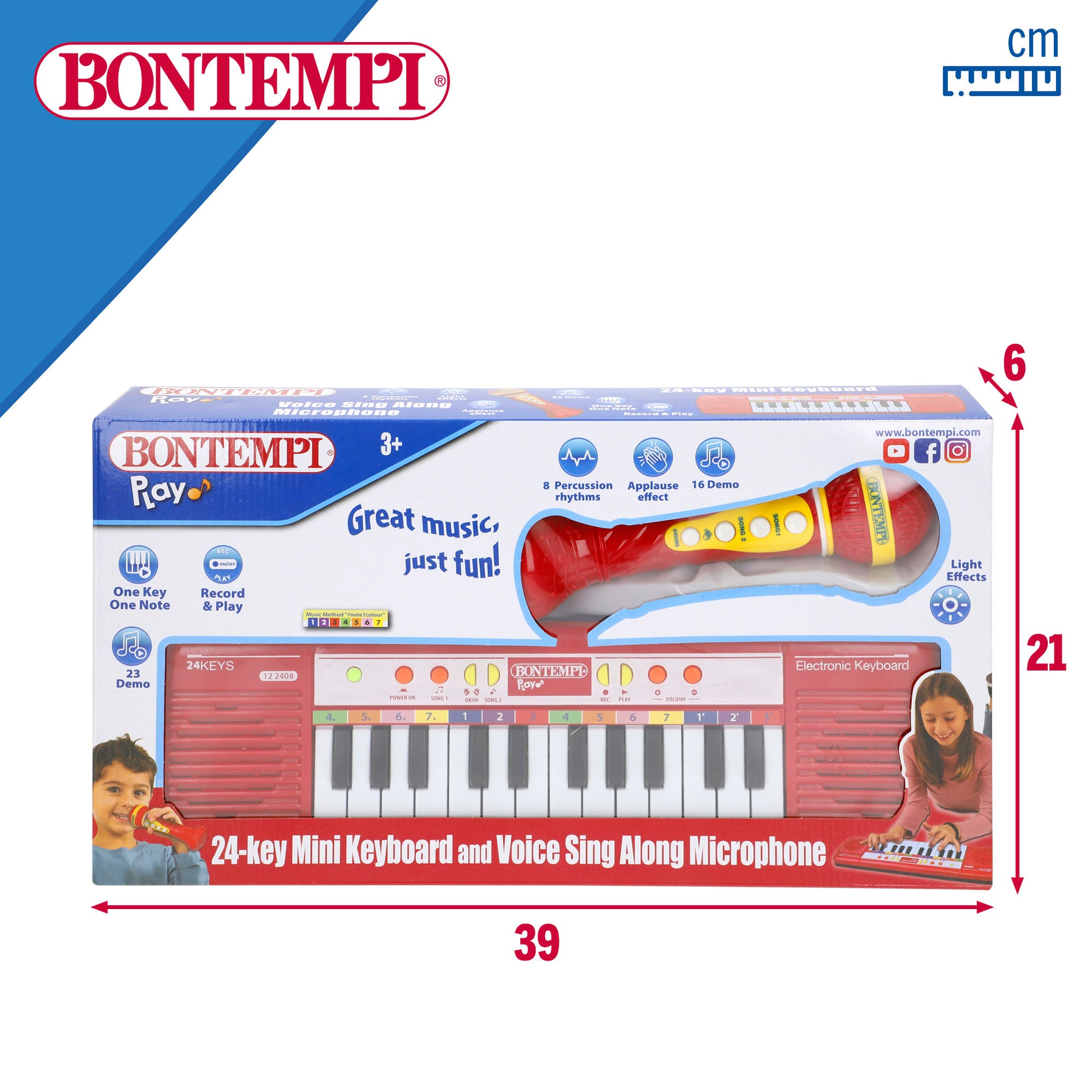 ¡Empieza a componer tus propias melodías con este teclado electrónico de juguete Bontempi compuesto por 24 teclas! Un juguete musical con una amplia variedad de melodías y sonidos para que los pequeños de la casa se diviertan al ritmo de la música. Además, viene con micrófono para cantar y bailar sin parar. ¡Super divertido!