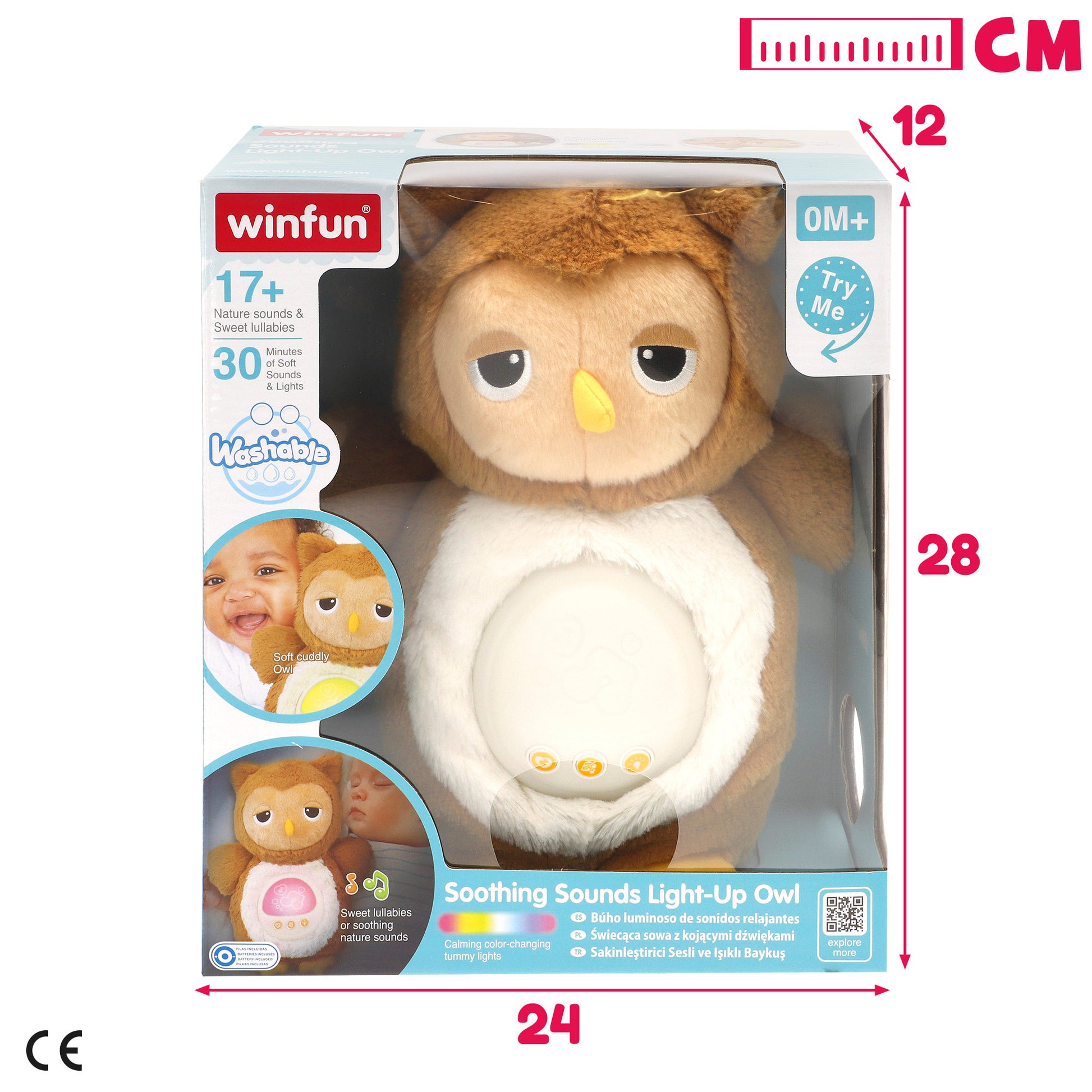 Duerme plácidamente con este adorable y tierno búho de peluche Winfun. ¡Su barriguita iluminará la habitación con luz cálida, mientras sus sonidos relajantes crean un ambiente perfecto para que te sientas seguro y en calma! Con su diseño blandito y suave, este búho de peluche está pensado para ser el compañero ideal durante las noches, envolviendo tu habitación en una atmósfera acogedora para que tengas dulces sueños.