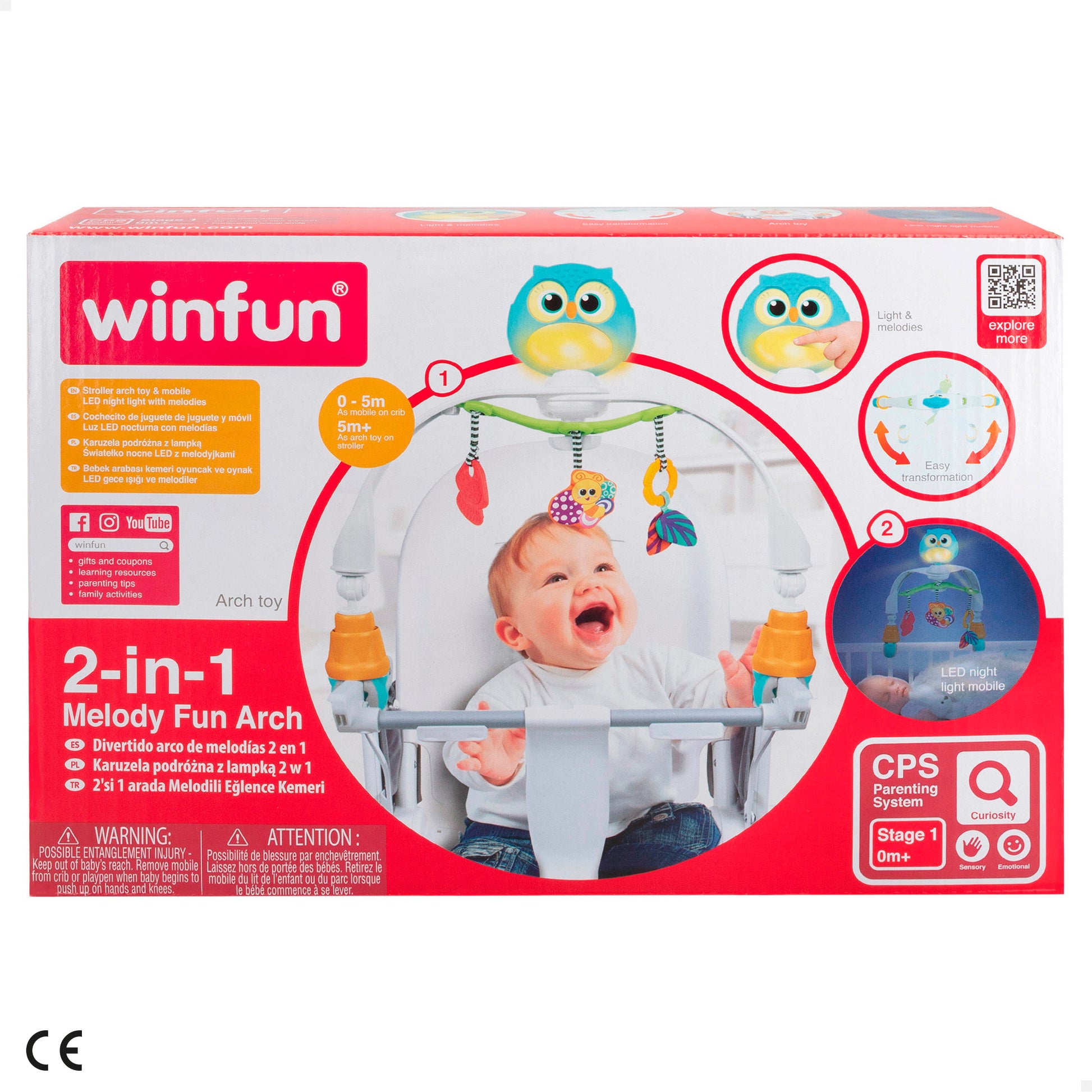 a madres a elegir el juguete adecuado según la edad y la necesidad de desarrollo físico, social y cognitivo del niño. Según el CPS Parenting System, este arco de actividades de juguete está dentro de la Etapa 1 (0-6 meses) y gracias a sus diferentes texturas, frases, palabras y melodías que emite, fomenta el aprendizaje, estimula los sentidos y contribuye a desarrollar las emociones del pequeño.