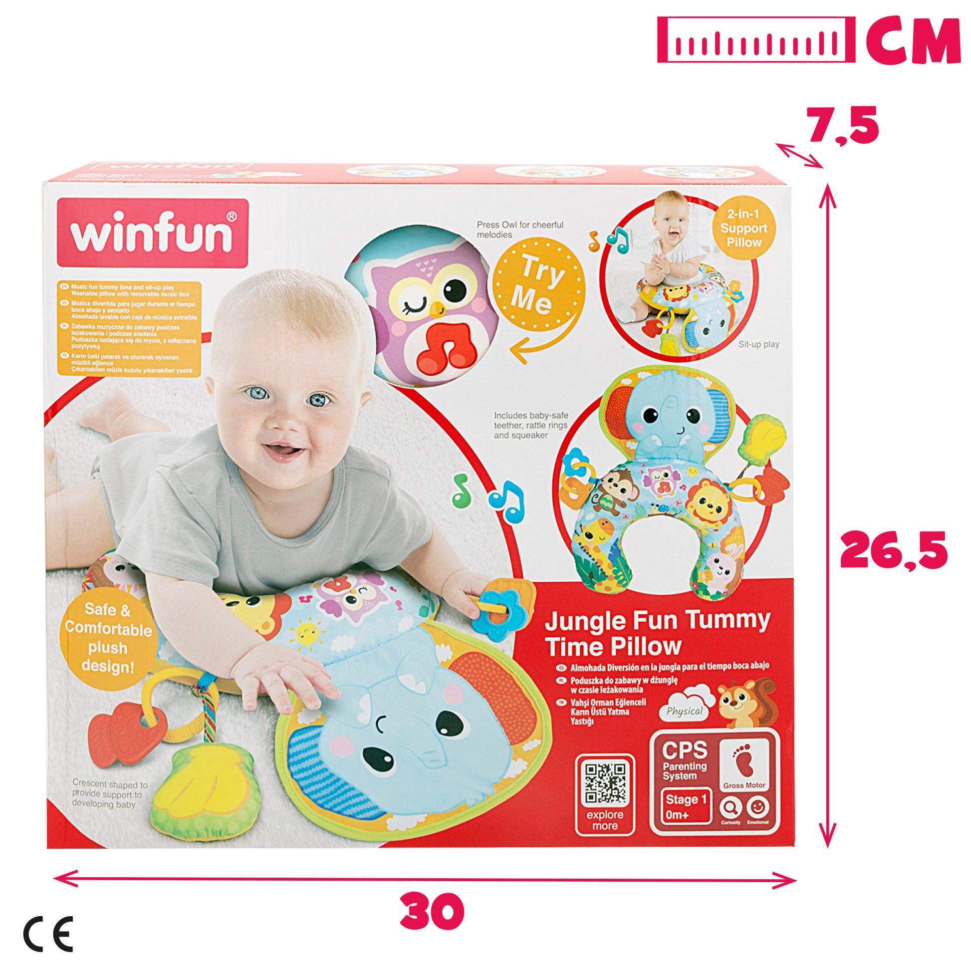 ¡El cojín antivuelco bebé Winfun es un juguete lleno de experiencias sensoriales para los bebés de la casa! Con su diseño suave en forma de media luna, adornado con encantadores animales de la jungla, esta almohada invita a los más pequeños a explorar, ya sea sentados o boca abajo, permitiéndoles descubrir nuevas formas, texturas, colores y sonidos sorprendentes.