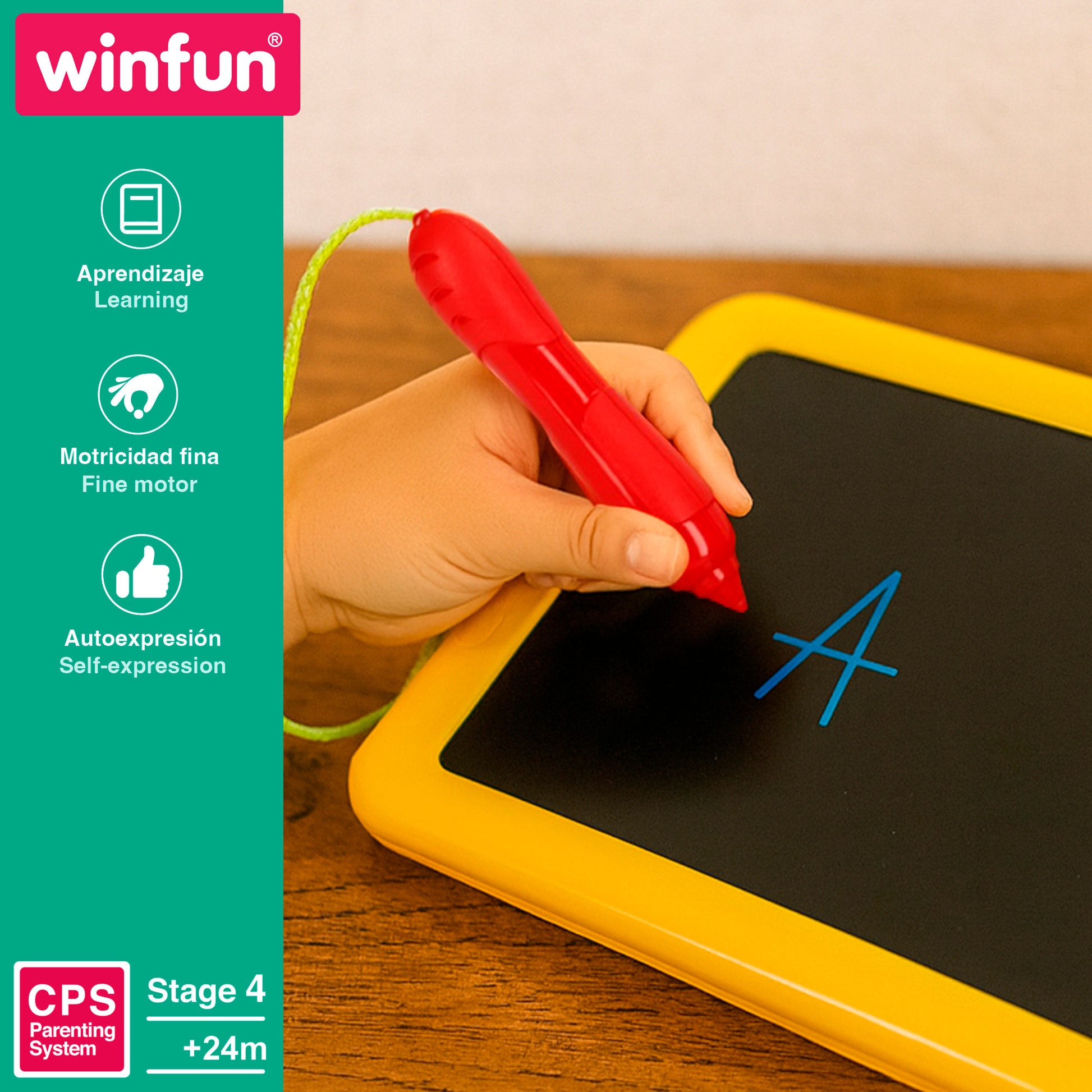 Esta tablet bilingüe es ideal para estimular el aprendizaje de nuevas palabras, ya que introduce a los niños en el vocabulario básico en inglés y español a través de juegos interactivos. Su pantalla luminosa, los sonidos envolventes y los botones de colores estimulan los sentidos, mientras que la función de dibujo y escritura potencia la creatividad y la autoexpresión. Además, ayuda a desarrollar la motricidad fina al escribir y pulsar botones.