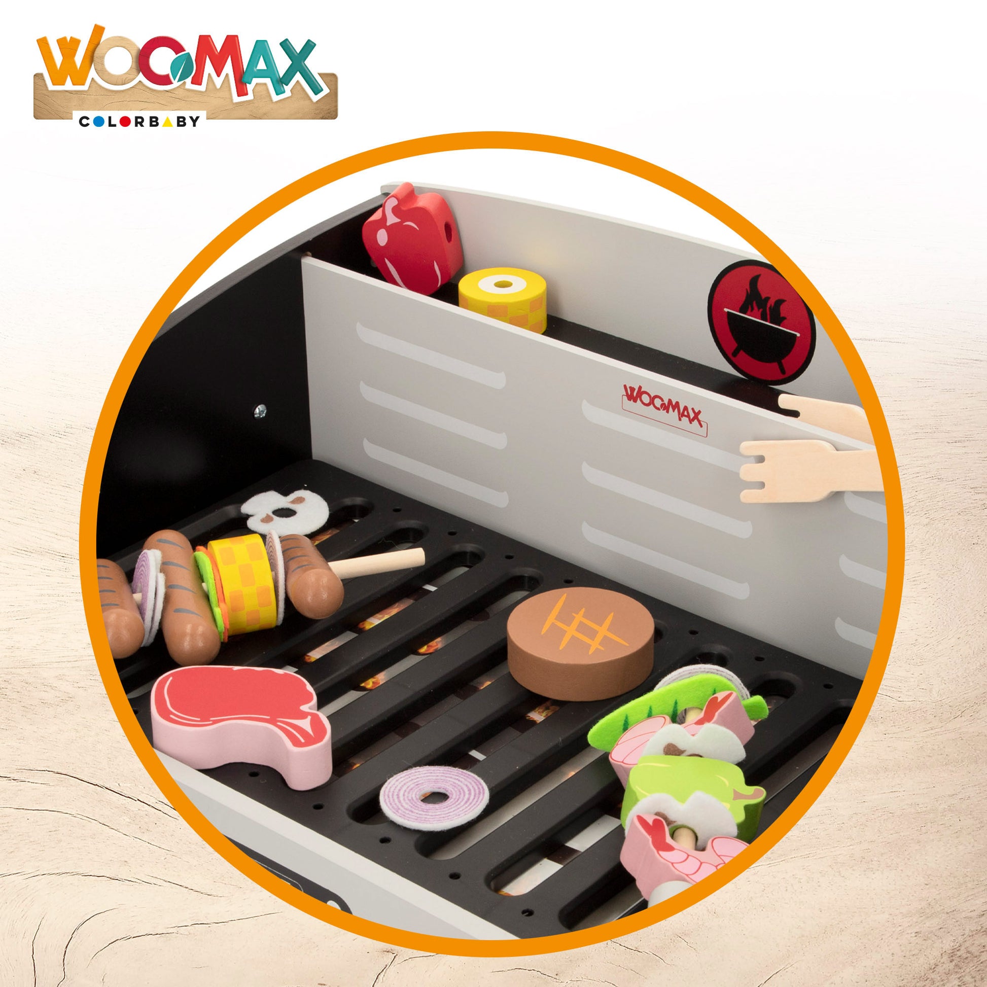Prepara una rica barbacoa con la mesa de madera con alimentos de WOOMAX. Incluye perritos calientes, hamburguesas y verduras para cocinar unos sabrosos platos para toda la familia. La barbacoa mide 50,5x34x23,5 cm y está fabricada con madera natural y botones que giran con sonido mecánico. Se recomienda para niños a partir de 2 años. Es un juguete adscrito a la iniciativa "Comparte y recicla", una acción solidaria de la Fundación Crecer Jugando cuyo objetivo es la recogida de juguetes para su donación a organizaciones benéficas españolas.