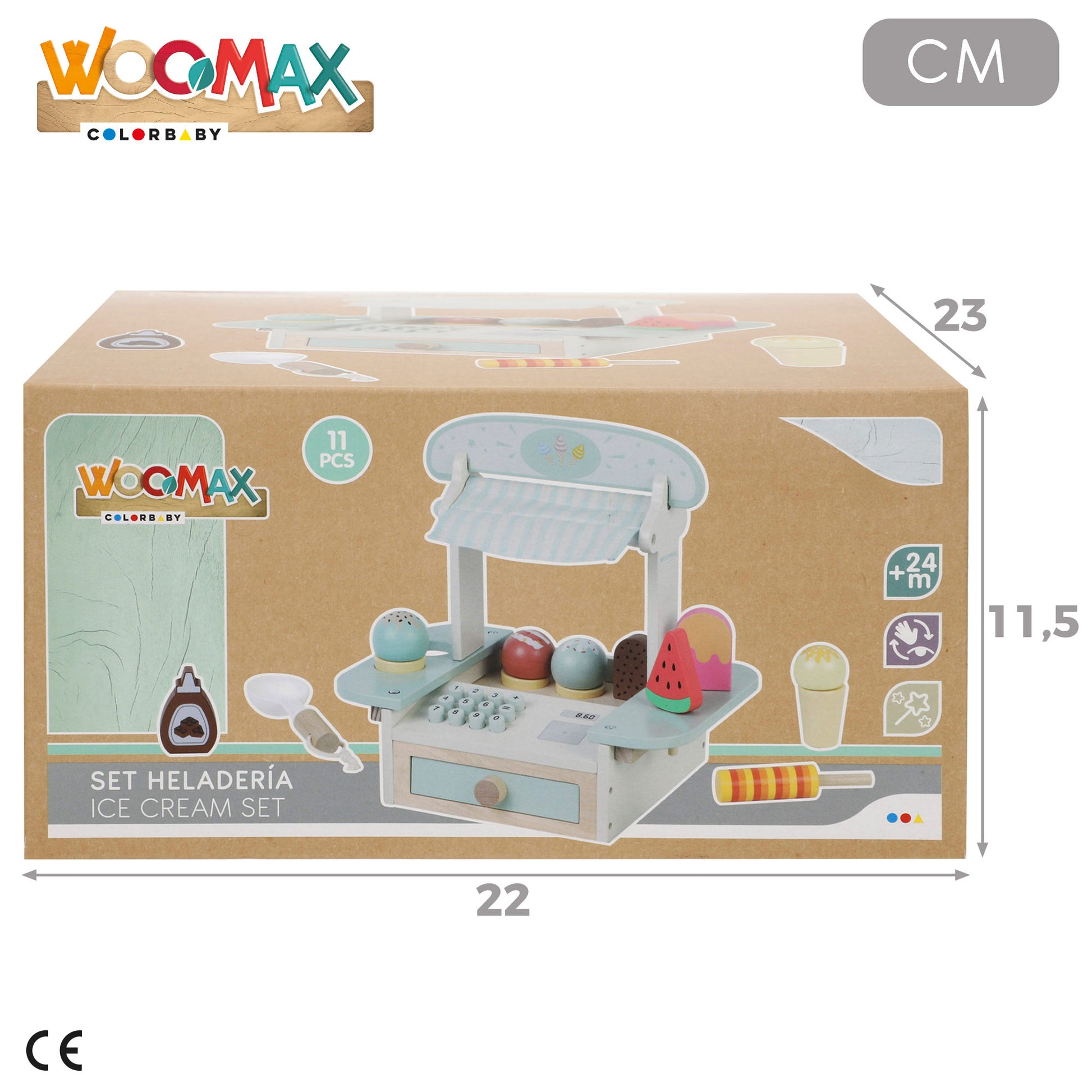 Conviértete en un auténtico heladero con este set de heladería de madera WOOMAX. Los peques podrán inventar sus propias combinaciones de sabores, apilar bolas de helado y atender a sus clientes como si tuvieran su propia tienda. Su diseño en tonos pastel y madera natural lo convierte en un juguete atractivo, seguro y perfecto para fomentar la creatividad.